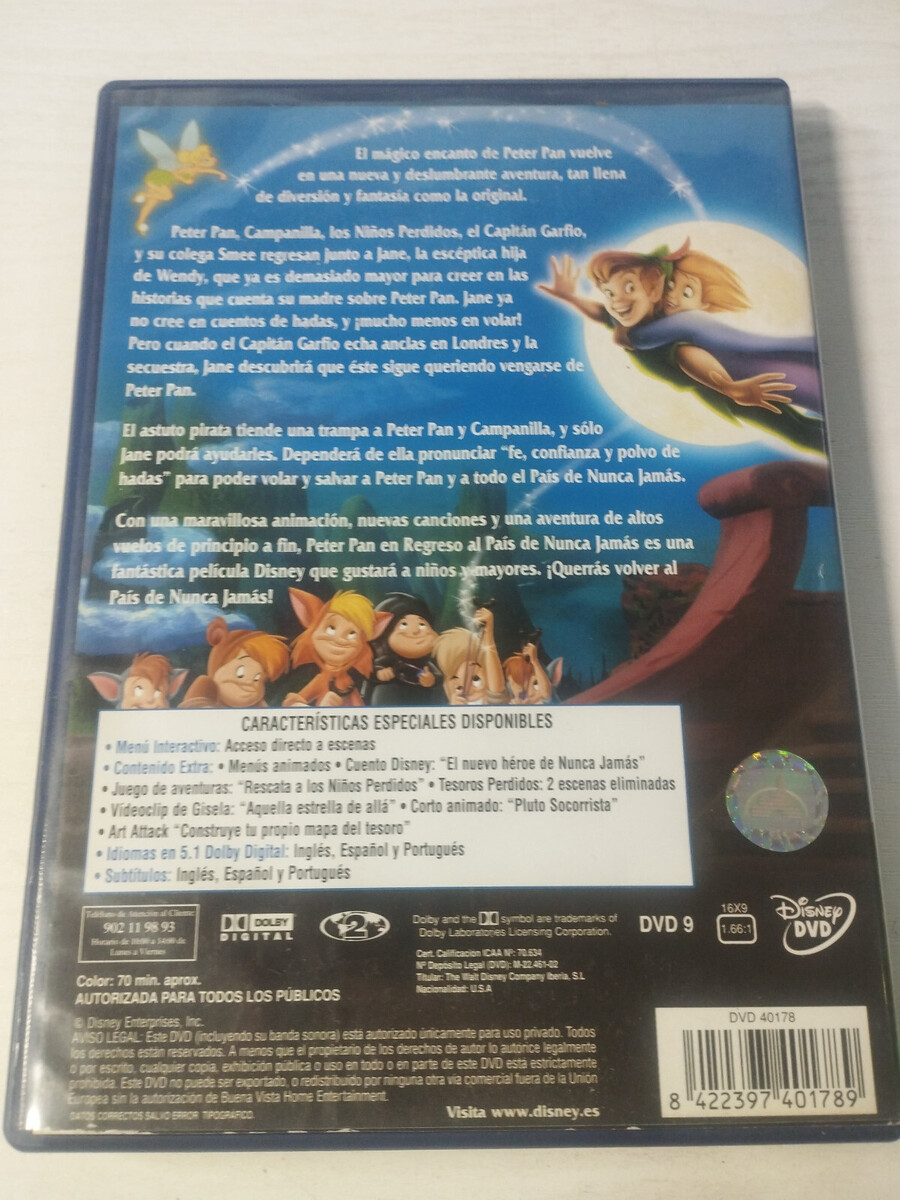 Peter Pan Regreso Jamais Disney de Country - DVD Region 2 Español Ingles Am