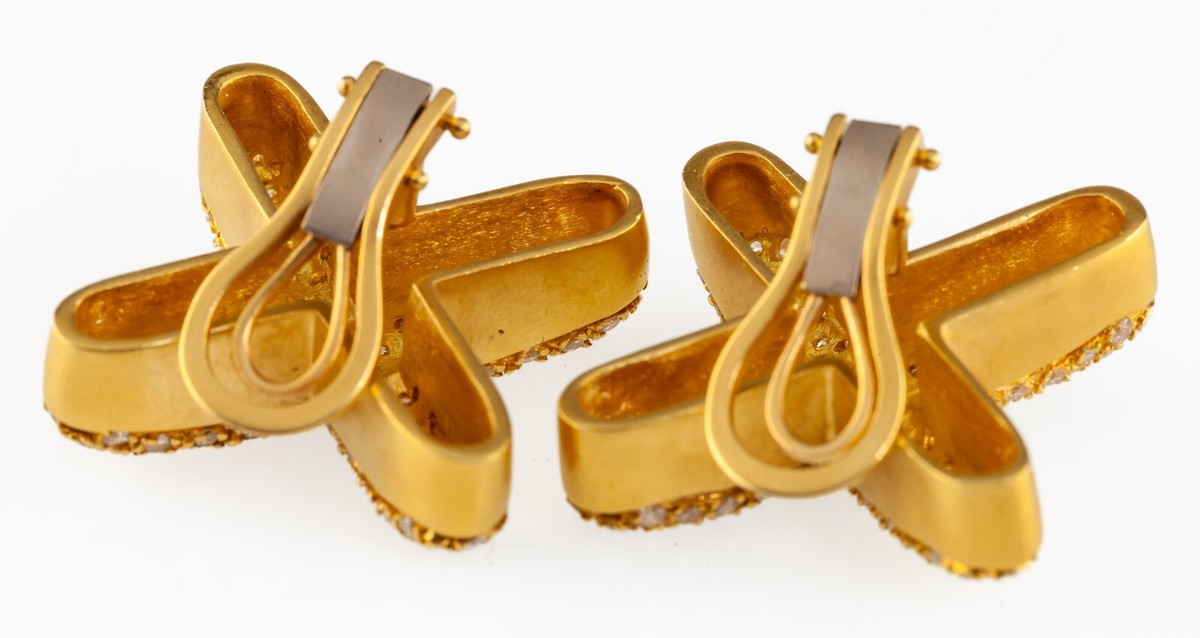 18k Yellow Matte Gold "X" Clip-On Earrings