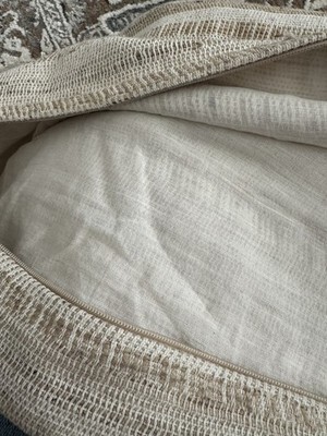 Crate & Barrel Vittoria Striped Woven Pillow Covers 2 Lumbar 24x16" Tan Textured