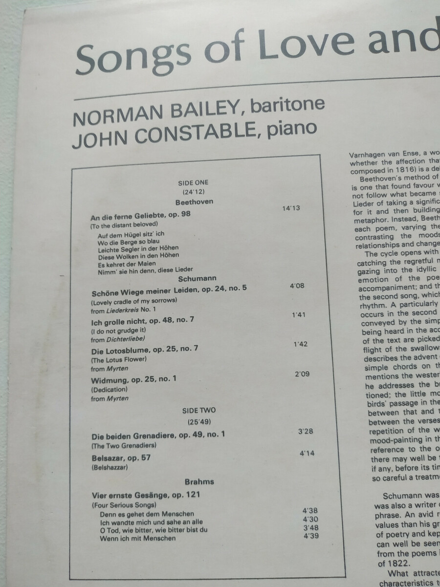 Norman Bailey John Constable Songs Love and Death 1977 - LP 12 " vinyl VG/VG Am