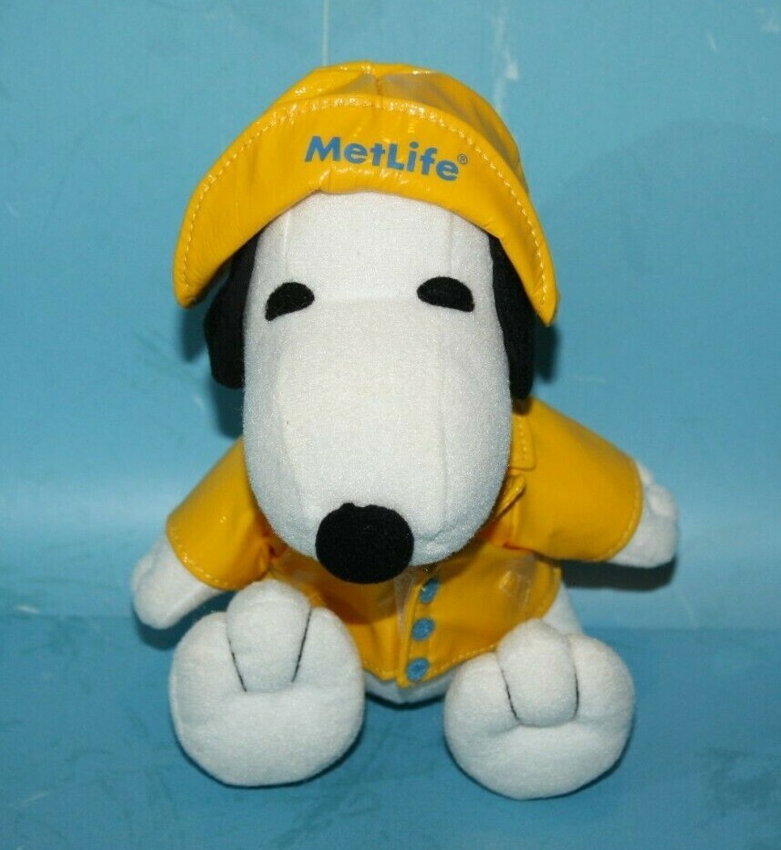 Snoopy Metlife Plush Dog 7" Peanuts Gang Yellow Rain Coat Stuffed Puppy Soft Toy