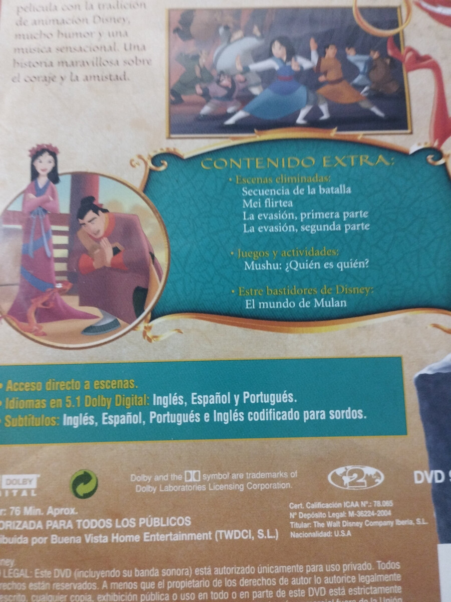 Mulan 2 the Legend Continuous WALT DISNEY DVD Spanish English Region 2 Am