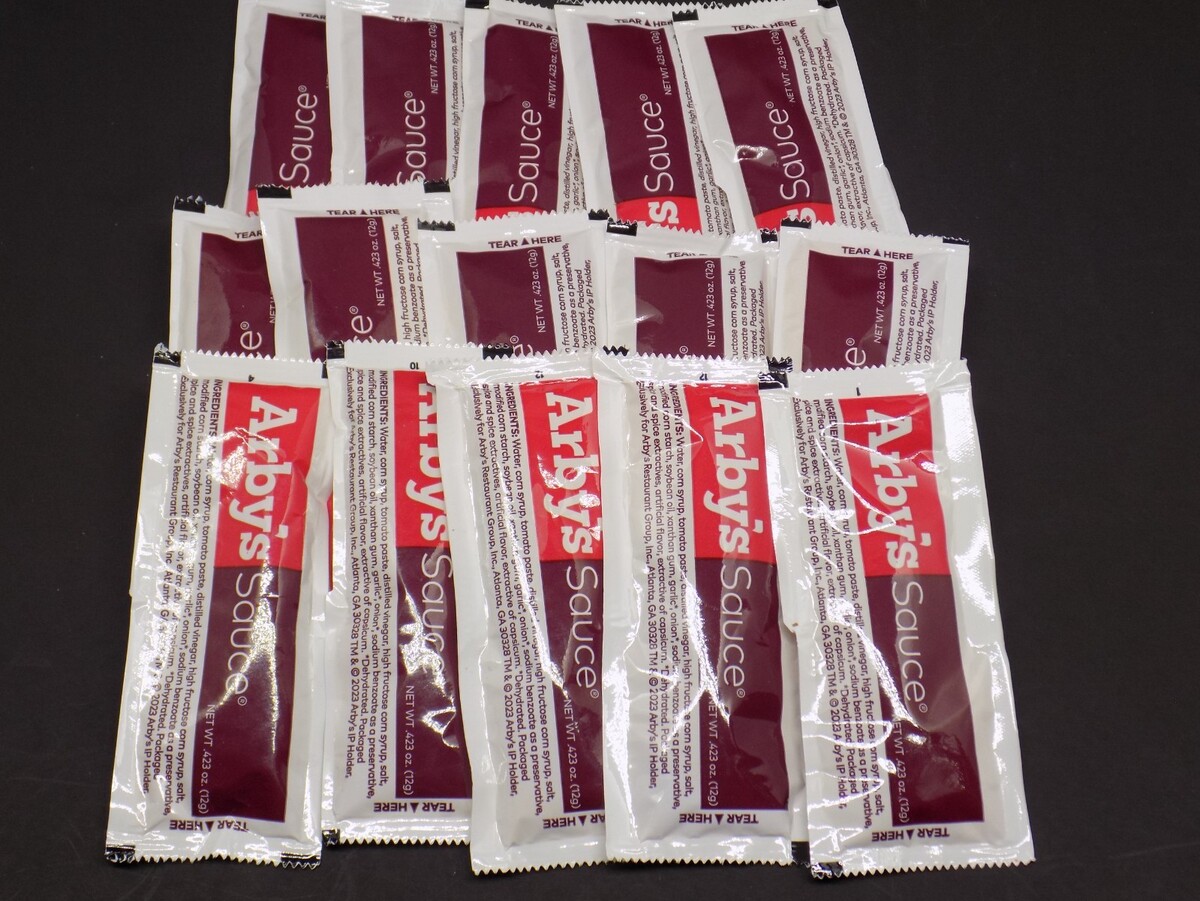 Bring home the classic Arby?s flavor with this bundle of 15 brand?new, sealed Arby?s Sauce packets. Perfect for roast beef sandwiches, fries, sliders, meal prep, lunchboxes, or stocking your pantry with your favorite fast?food condiment.