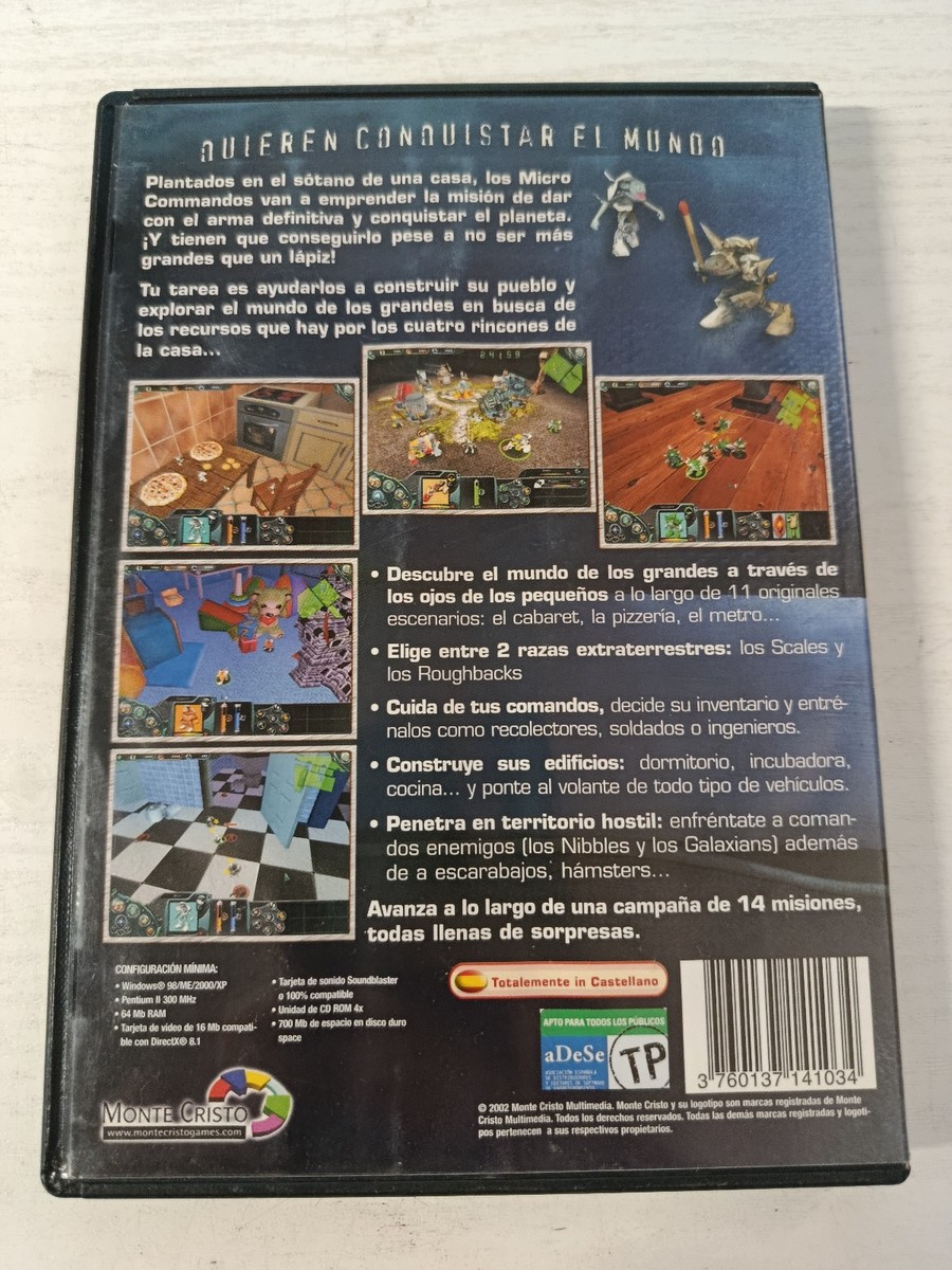 Une proposition de originale con une perspective differente :vivirel le monde du point de vuede des etres minuscules. Con des scenarios varies, un ton amusant et des mecaniques uniques, Micro-commandos es perfecto para ceux qui recherchent un titre de different etcon beaucoup de charisme. Edition espagnole con voix en anglais et textes en espagnol, ideale para les collectionneurs. Nous sommes bases en Espagne et proposons des articles soigneusement organis