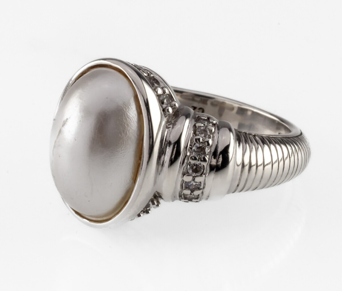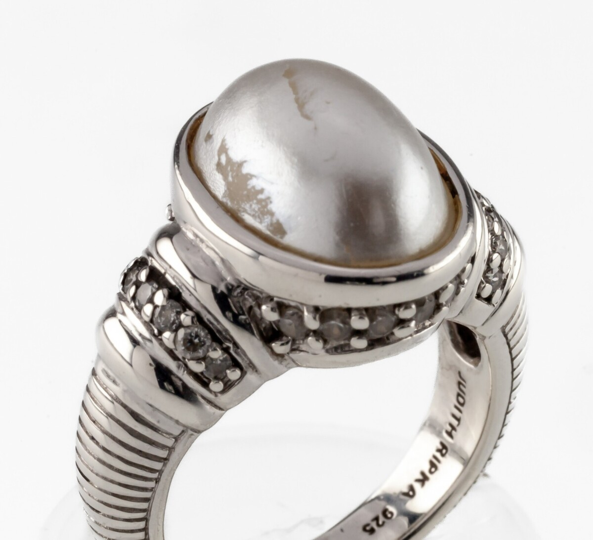 Judith Ripka Sterling Silver Mother-of-Pearl and Diamonique Ring Size 6
