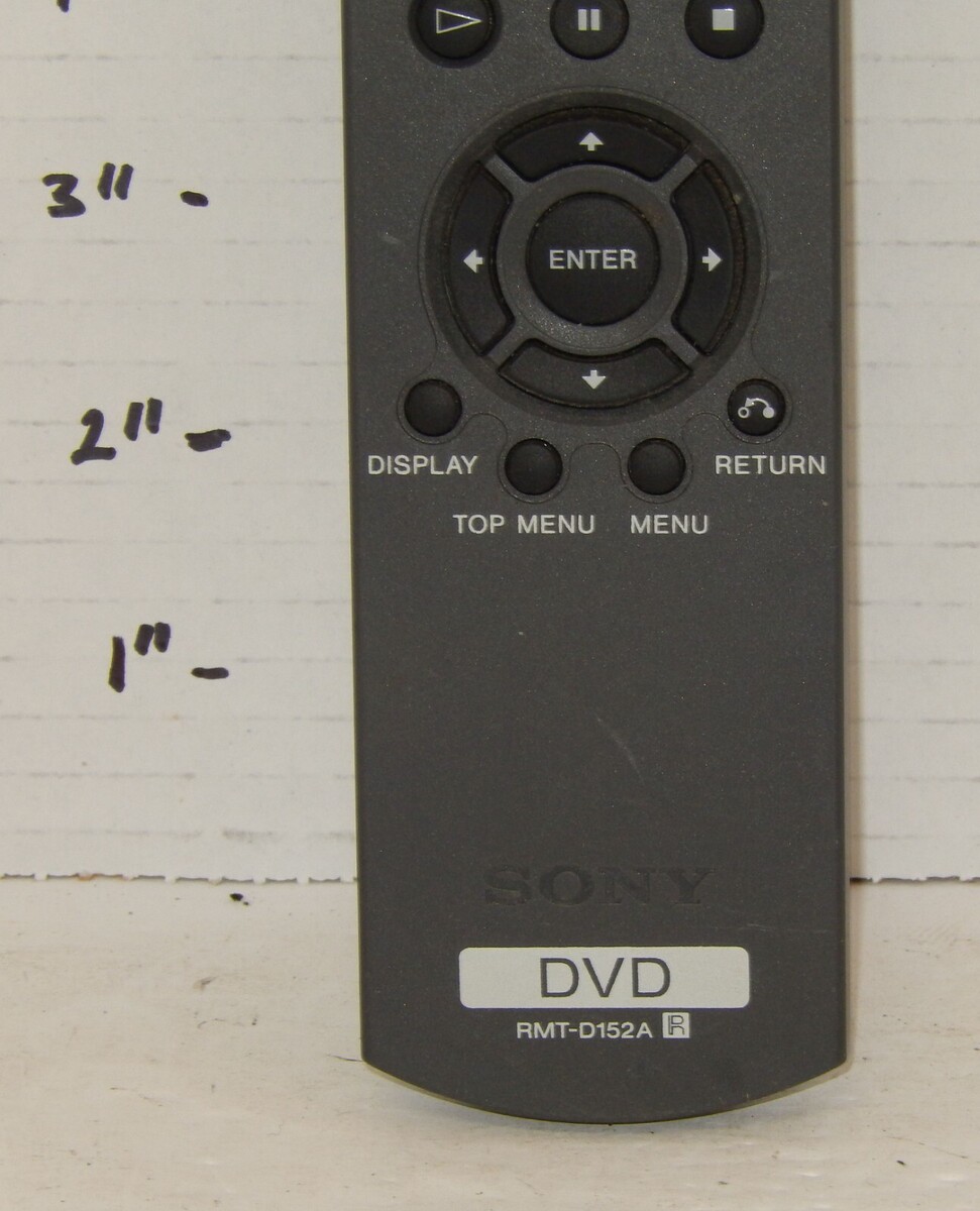 For Sale is a Sony RMT-D152A Remote Control For DVP-NS325 DVP-NS355 DVP-K870P Dvpk880p. it in very good used condition as seen in the pictures provided what you see is what you will receive. Has been tested and works. Please ask Any and All Questions prior to purchasing. Fast Same or Next day shipping with Free Delivery Confirmation within the U.S. Payment Due within 7 days of purchase (if you need more time please let us know In advance) we love to combine shipping is always a Yes and Most of the time Additional Items Ship for free.
