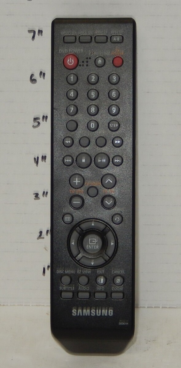 For Sale is a OEM Samsung 00061H Remote Control for DVD-HD755 DVD-1080P7 Tested Works. it in good used condition as seen in the pictures provided what you see is what you will receive. Has been tested and works. Please ask Any and All Questions prior to purchasing. Fast Same or Next day shipping with Free Delivery Confirmation within the U.S. Payment Due within 7 days of purchase (if you need more time please let us know In advance) we love to combine shipping is always a Yes and Most of the time Additional Items Ship for free.