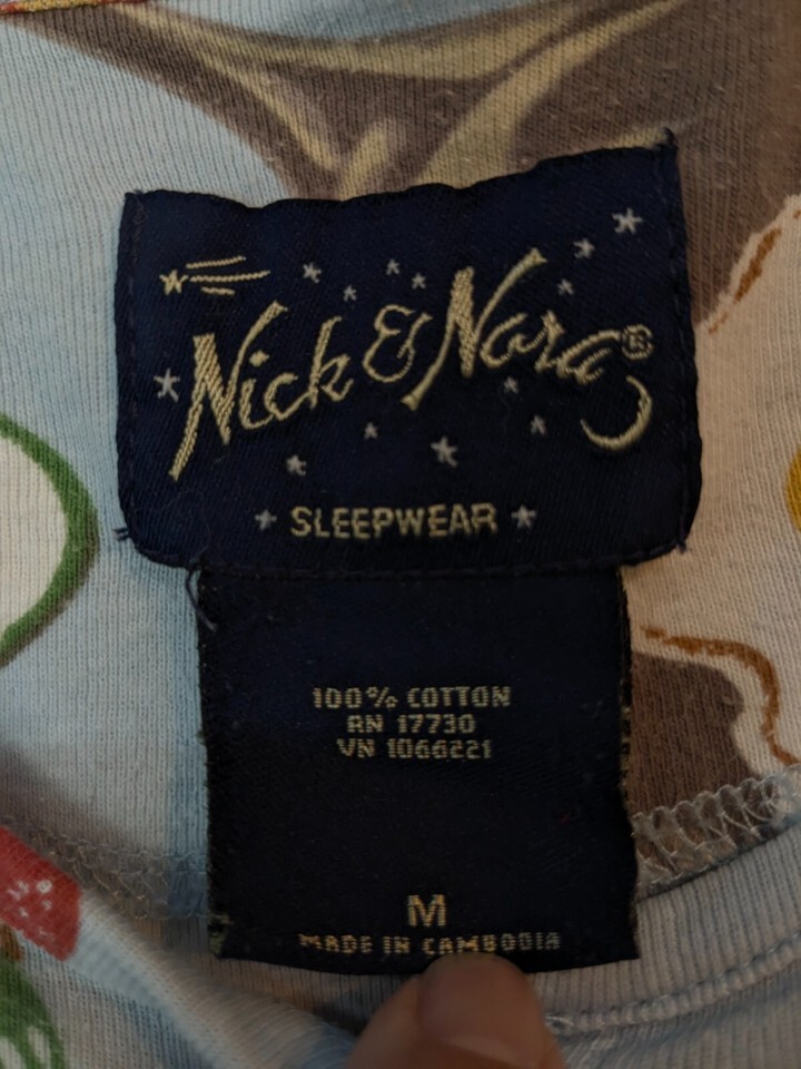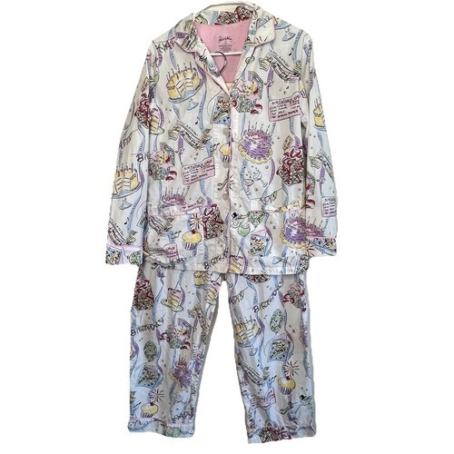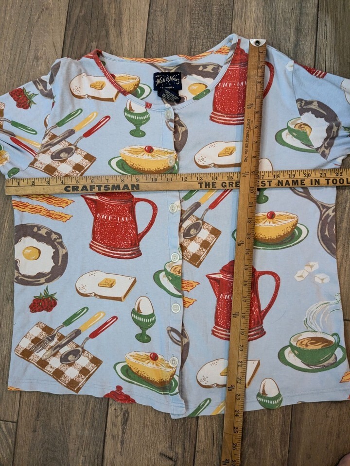 NICK & NORA Breakfast Foods Pajamas top womens sz M medium Blue Cotton Knit