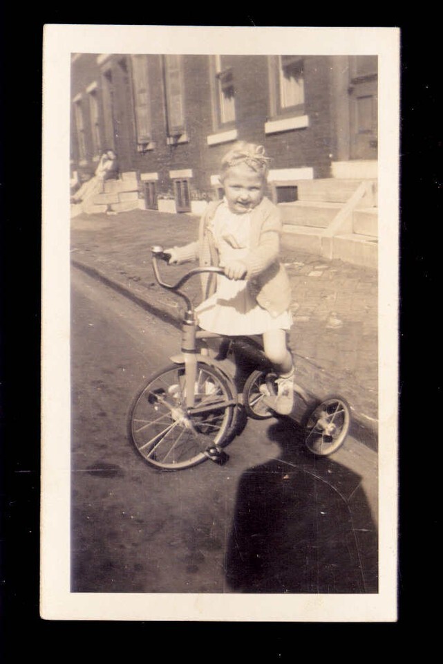 Found from ALBUM * 1946 3 Years old girl ANITA street scene GIRL on Tri Cycle