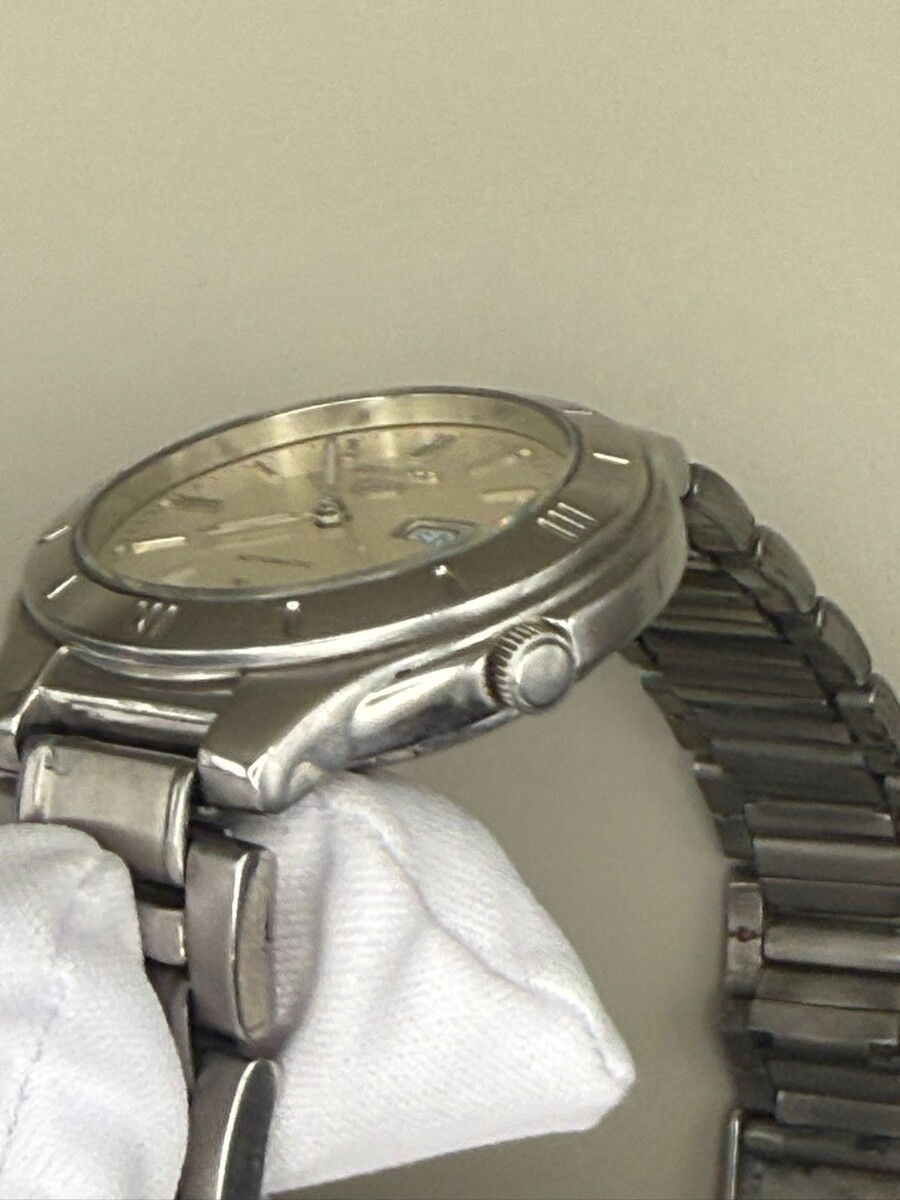 “GOOD CONDITION. IF YOU HAVE ANY QUESTIONS ABOUT THE CONDITION OF THE ITEM, HOW IT LOOKS, AND/OR FUNCTIONS, PLEASE ASK BEFORE BIDDING/BUYING. LOOK AT PHOTOS CAREFULLY, AND PLEASE USE A DEVICE LARGER THAN A SMARTPHONE. THERE ARE ASSOCIATED SIGNS OF WEAR AND USE COMMENSURATE WITH THE AGE OF THE WATCH, INCLUDING THE CASE BACK AND STRAP. WE STRONGLY ADVISE THAT YOU VIEW THE PHOTOS ON A DEVICE WITH A LARGER SCREEN THAN A SMARTPHONE.”