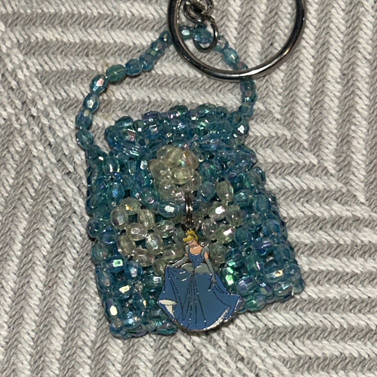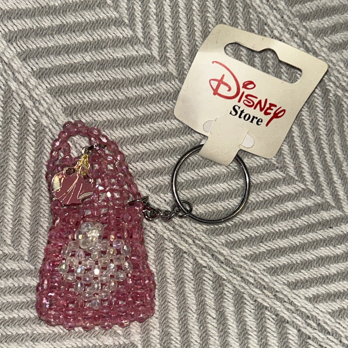 Disney Store Beaded Bag Keychain With Charm sleeping Beauty Cinderella D1