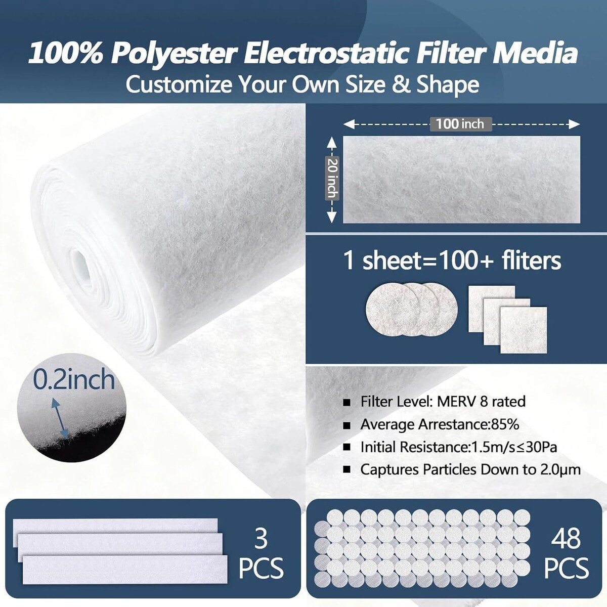 Roll provides 2000 sq. inches?cut into 100+ custom filters