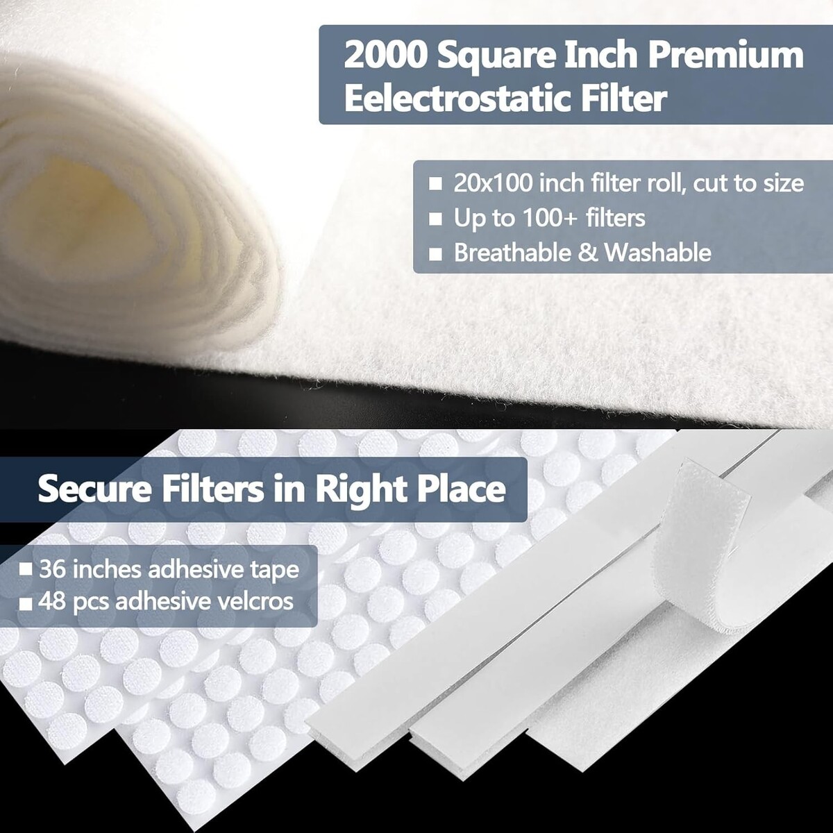 Cut to Fit MERV 8 Air Filters 20x100" - 48 Hooks for Safe, Easy Installation