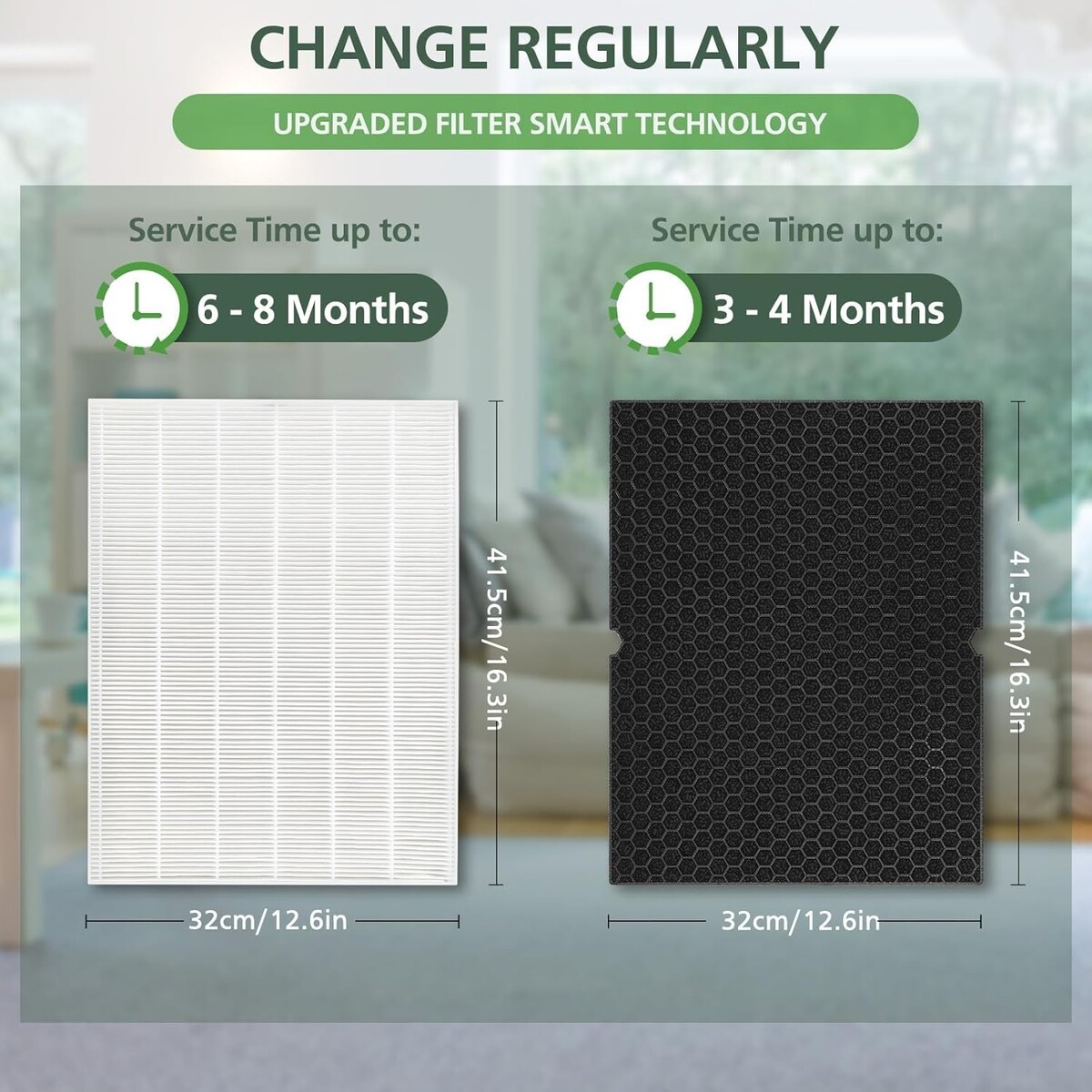Complete Package: Includes 1 HEPA filter and 1 Activated Carbon filter to maintain and enhance the performance of your air purifier.