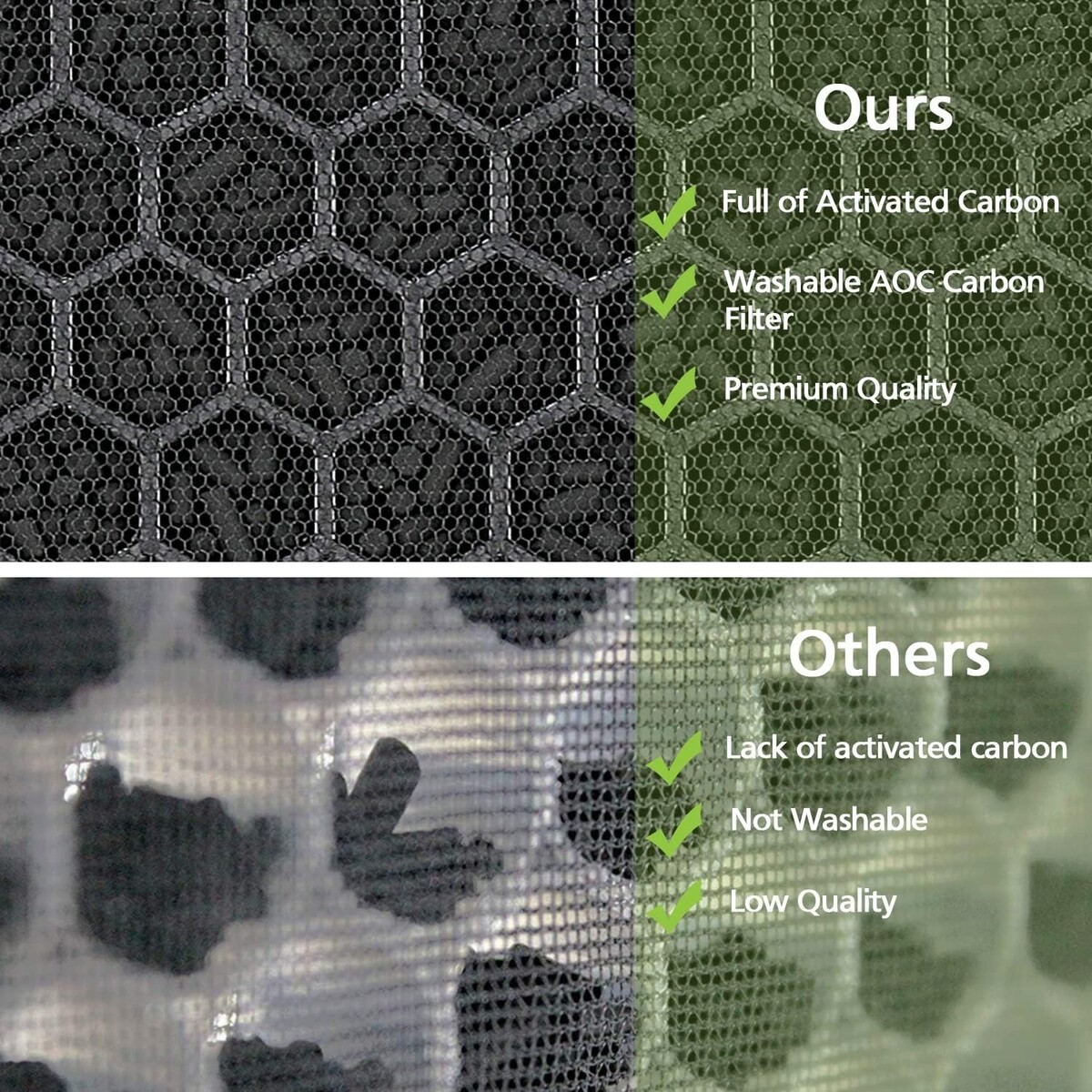 Advanced Odor Control: Equipped with an AOC (Advanced Odor Control) carbon filter to effectively block VOCs, fumes, and unpleasant odors.