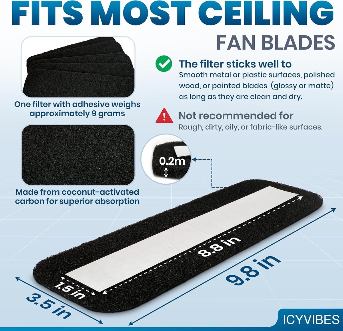 Washable and Reusable Ceiling Fan Dust Catcher - 10 PCS Activated Carbon Pads