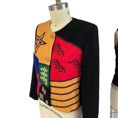 Vintage 1980s Lilli Ann Wool Sweater Colorful Ultrasuede Patch Embroidery M/L