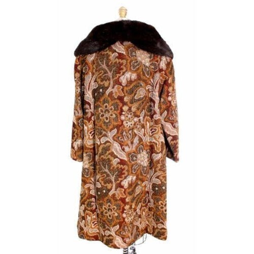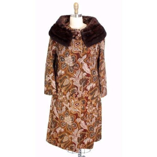 VTG 60s 70s Golet Bronze Brocade Coat Mod Mink Collar Classic Fit Womens M/L NWT