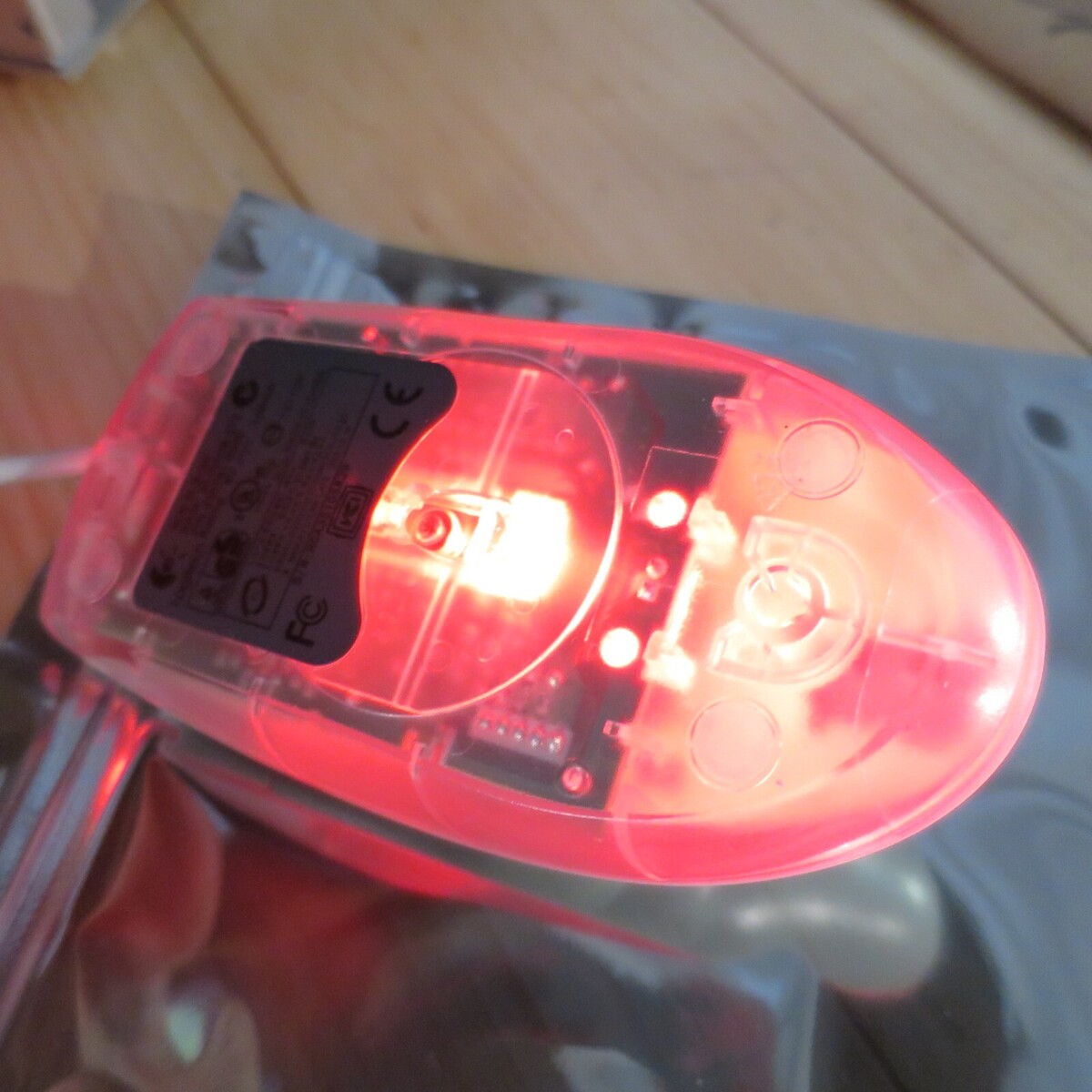 Tested working. Bright red LED light that gets even brighter temporarily when the mouse is moved!