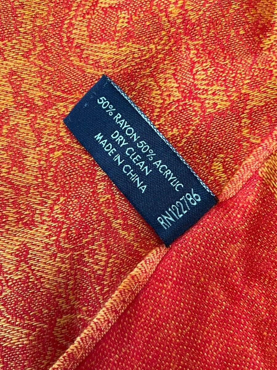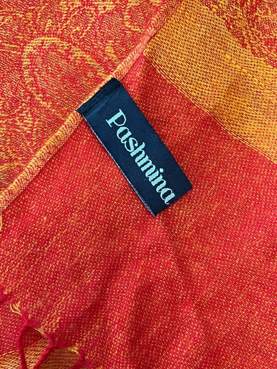 Pashmina Paisley Scarf Shawl Orange Red Fringe Wrap Mid 2000s Boho