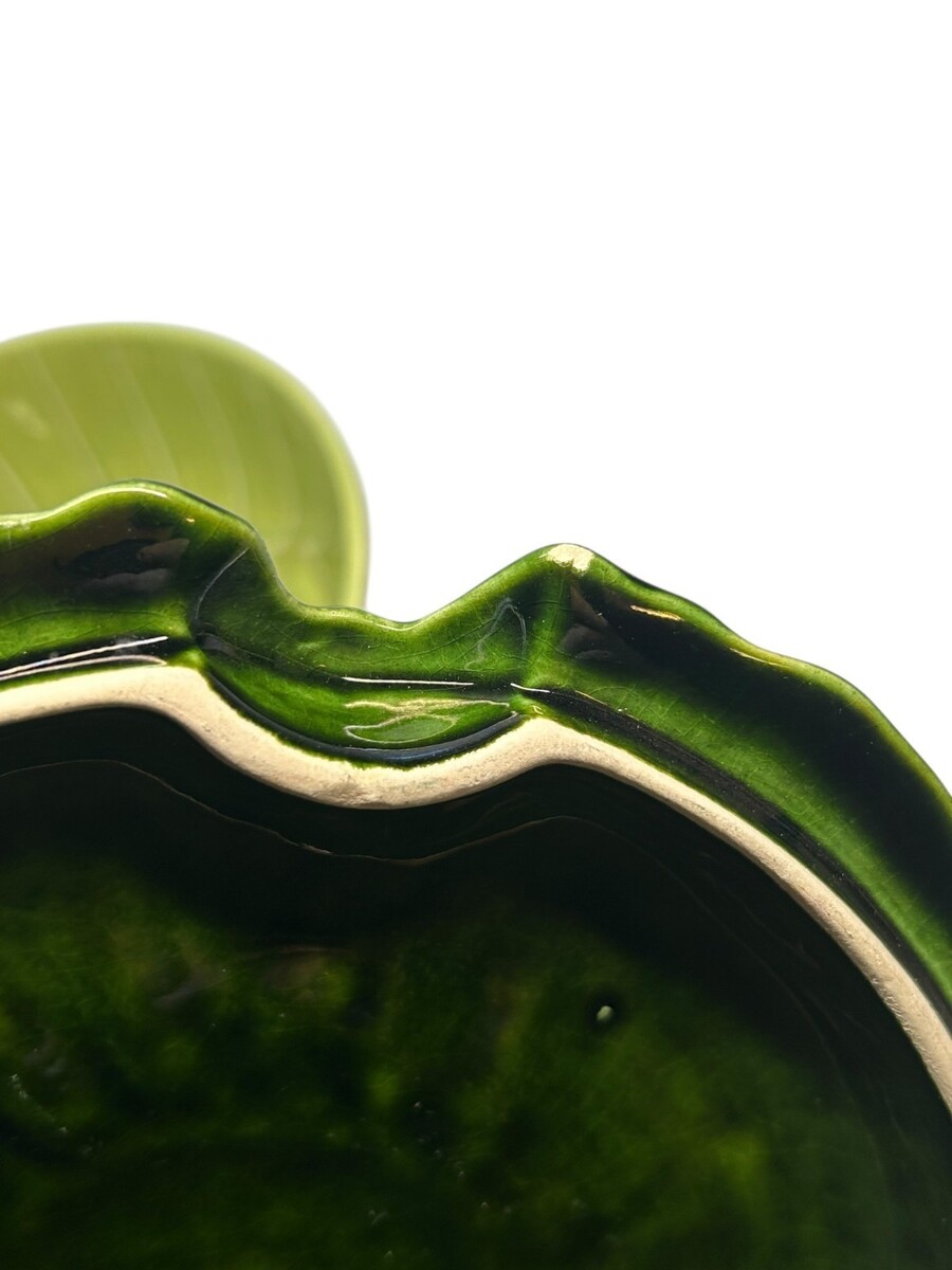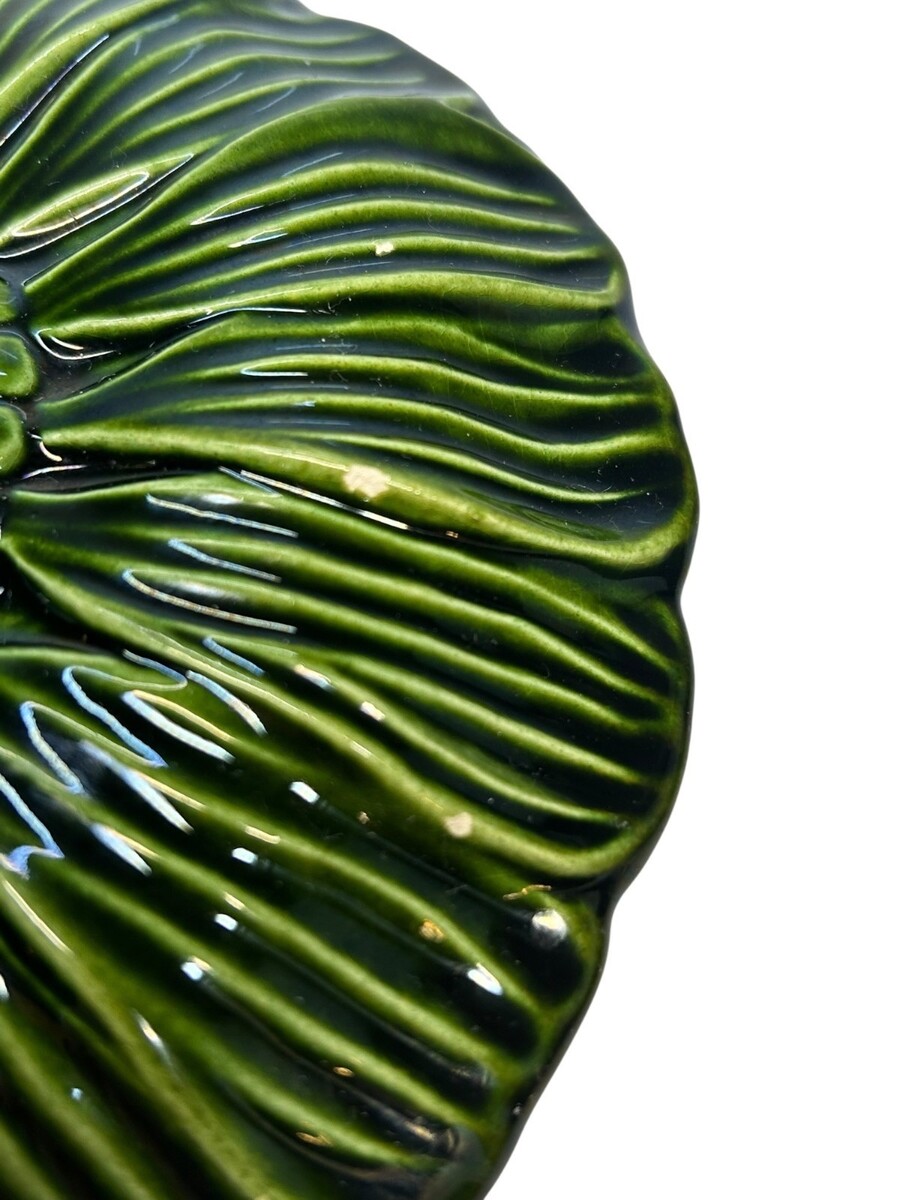 This charming green ceramic bowl is shaped like a flower-cabbage with intricate leaf detailing. Perfect for adding a touch of nature-inspired elegance to your interior decor.
