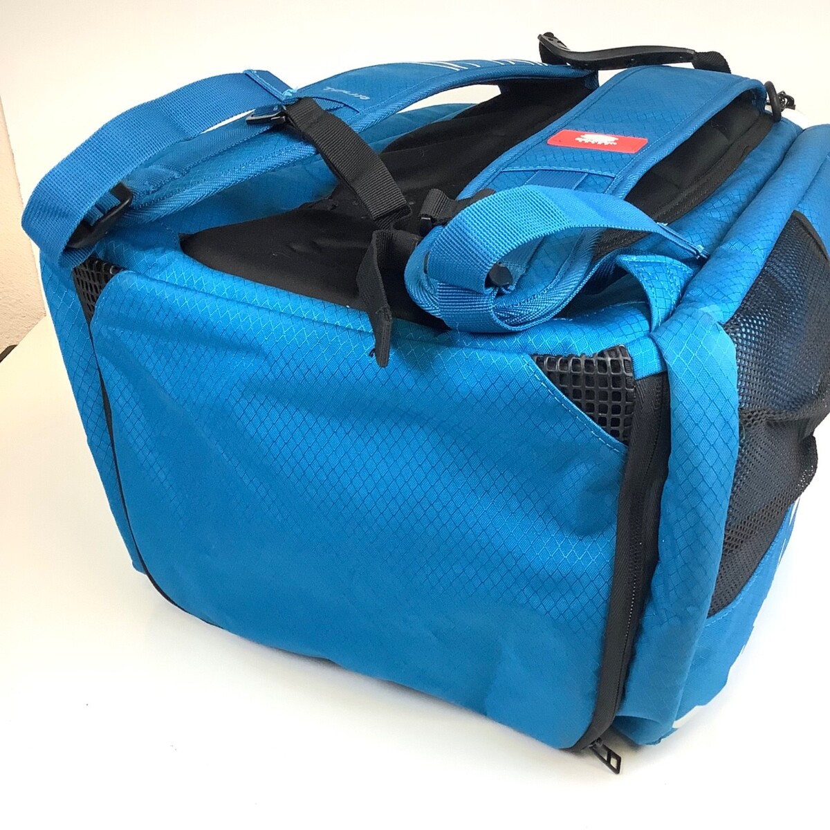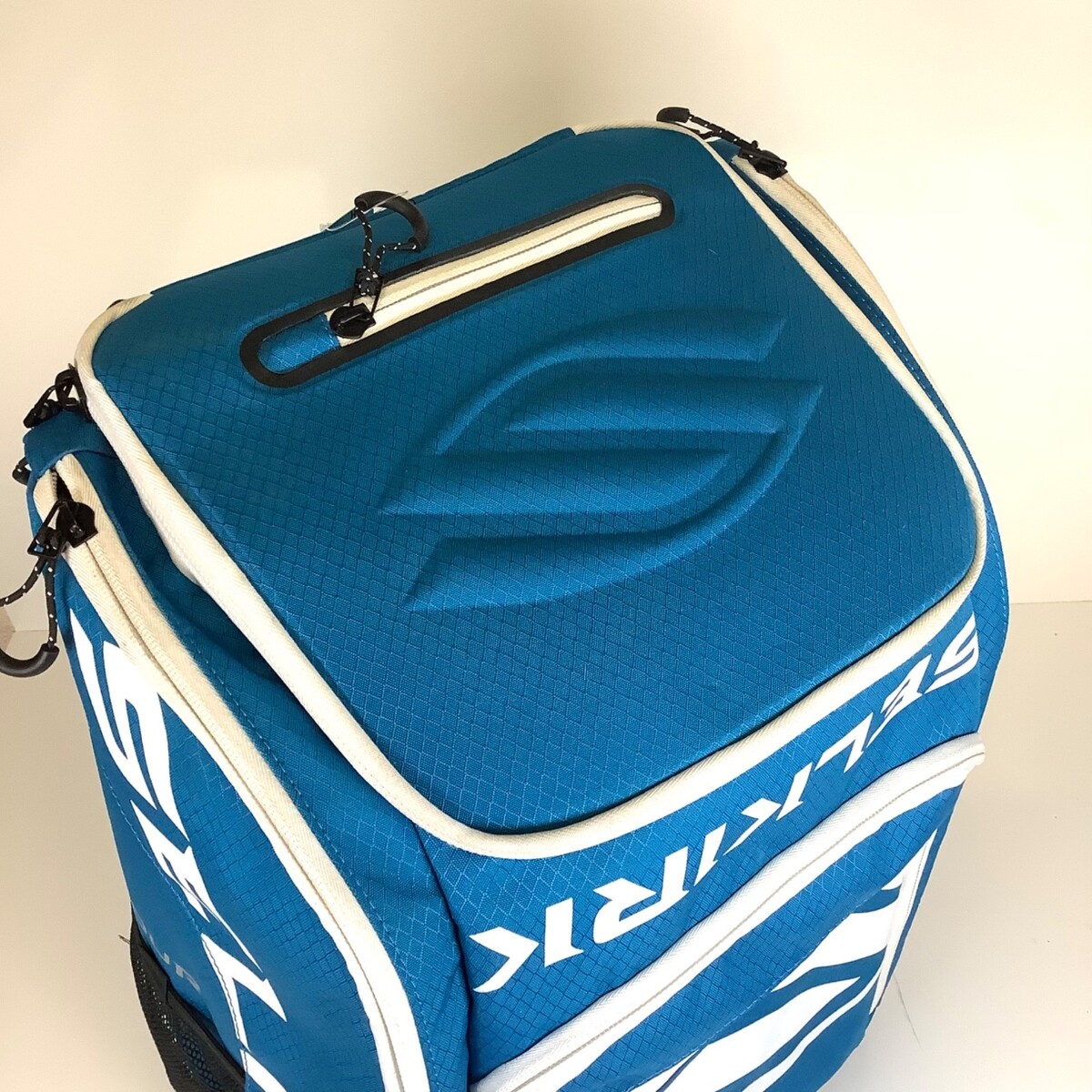 (Hard to Find) Blue Selkirk Pickleball Core Line Pro Tour Large Bag Backpack VERY NICE! I believe this was used maybe once or twice. It is in very good condition. I live in the town these are produced and I believe this contains a mistake on the bag, making it a one of a kind! The Selkirk name above the front pocket is upside down compared to the ones I see online. It measures approximately 14 inches wide by 20 inches high by 10 inches deep. Please see all photos.