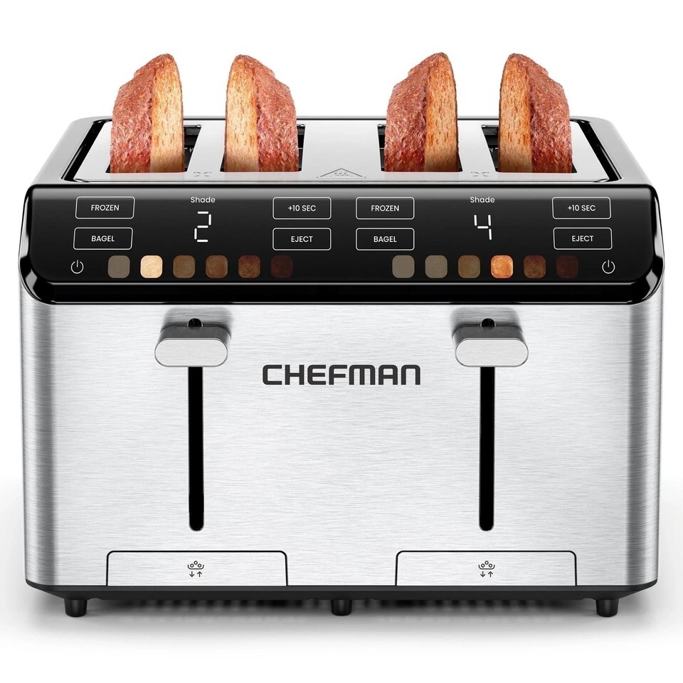 Chefman 4 Slice Toaster w/ Touchscreen Shade Settings, Stainless Steel