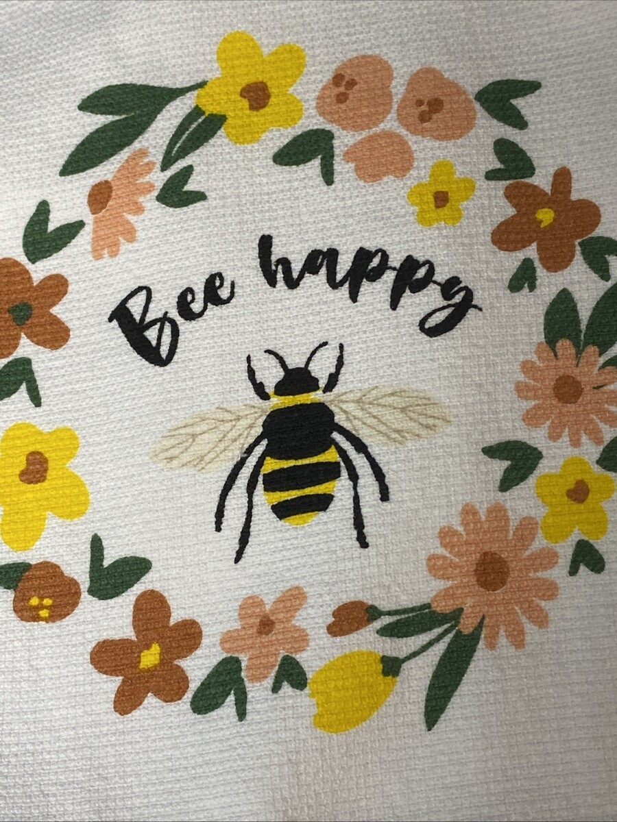 This retro-cool stylized novelty Kitchen or Bathroom Set of 6 hand, dish and tea towels featuring a cute saying of "Bee Happy" (a great reminder for us all). There are two sets of three designs. The towels are 100% cotton. The set is easy to care for as can be machine washed in cold.