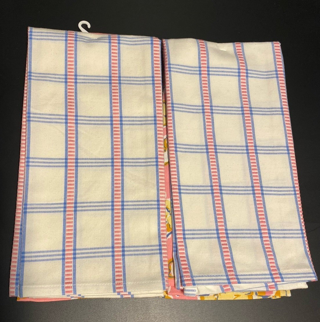 This retro-cool stylized novelty Kitchen Set of 4 tea towels features two designs, a pretty pink and blue plaid and a floral design. The towels are 100% cotton. The set is easy to care for as can be machine washed in cold.
