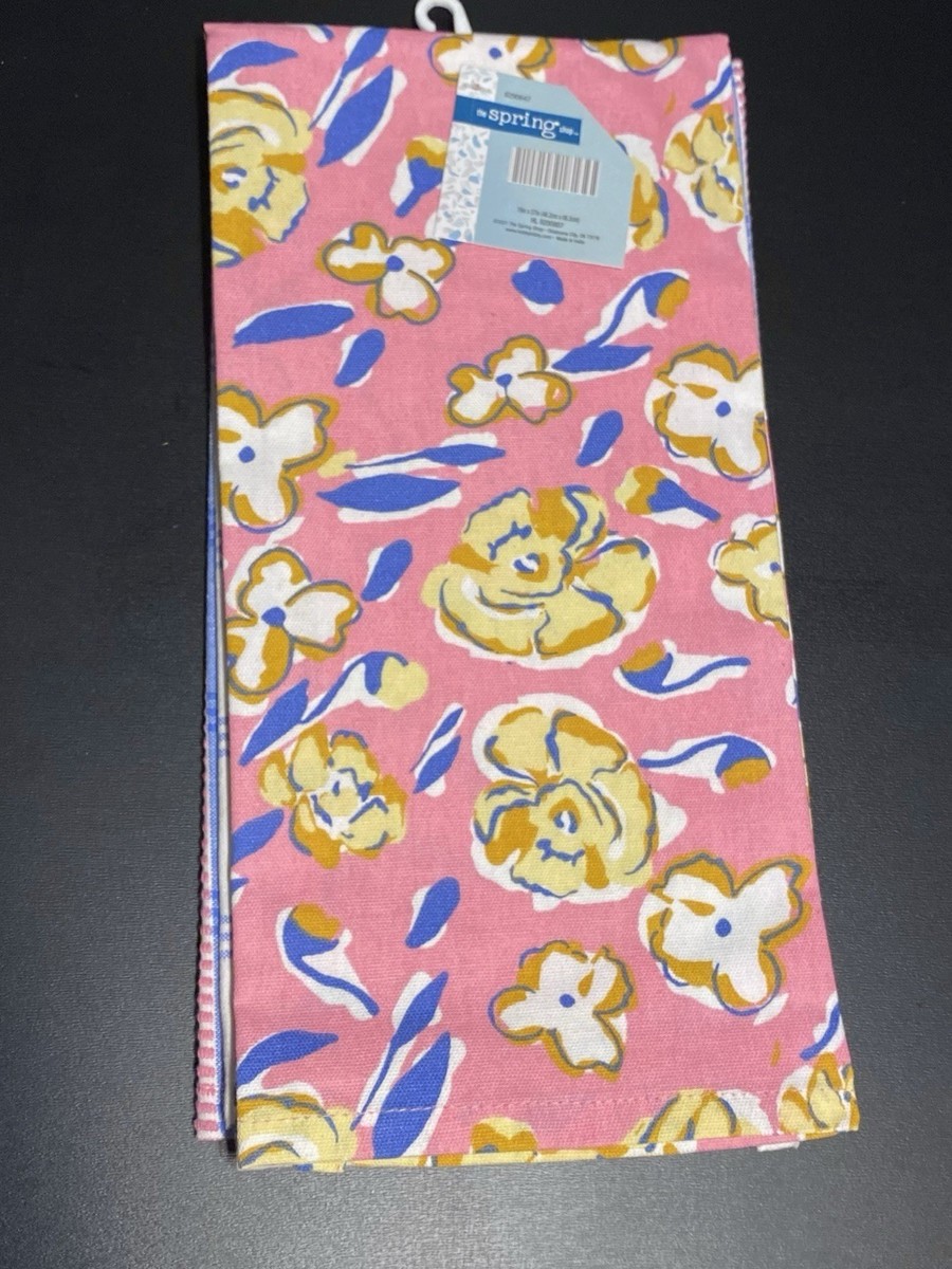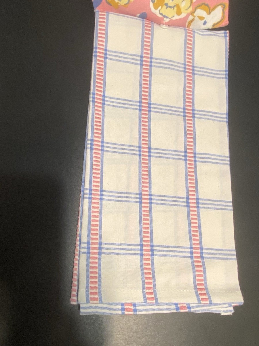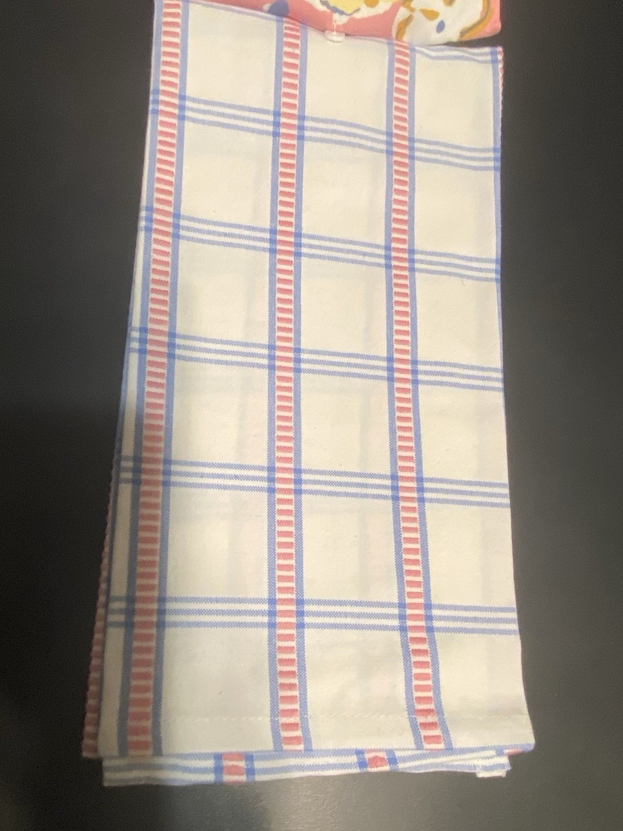 LOT of 4 Kitchen Tea Dish Towels Floral & Plaid Set FUN Pink Blue Tan NEW NWT
