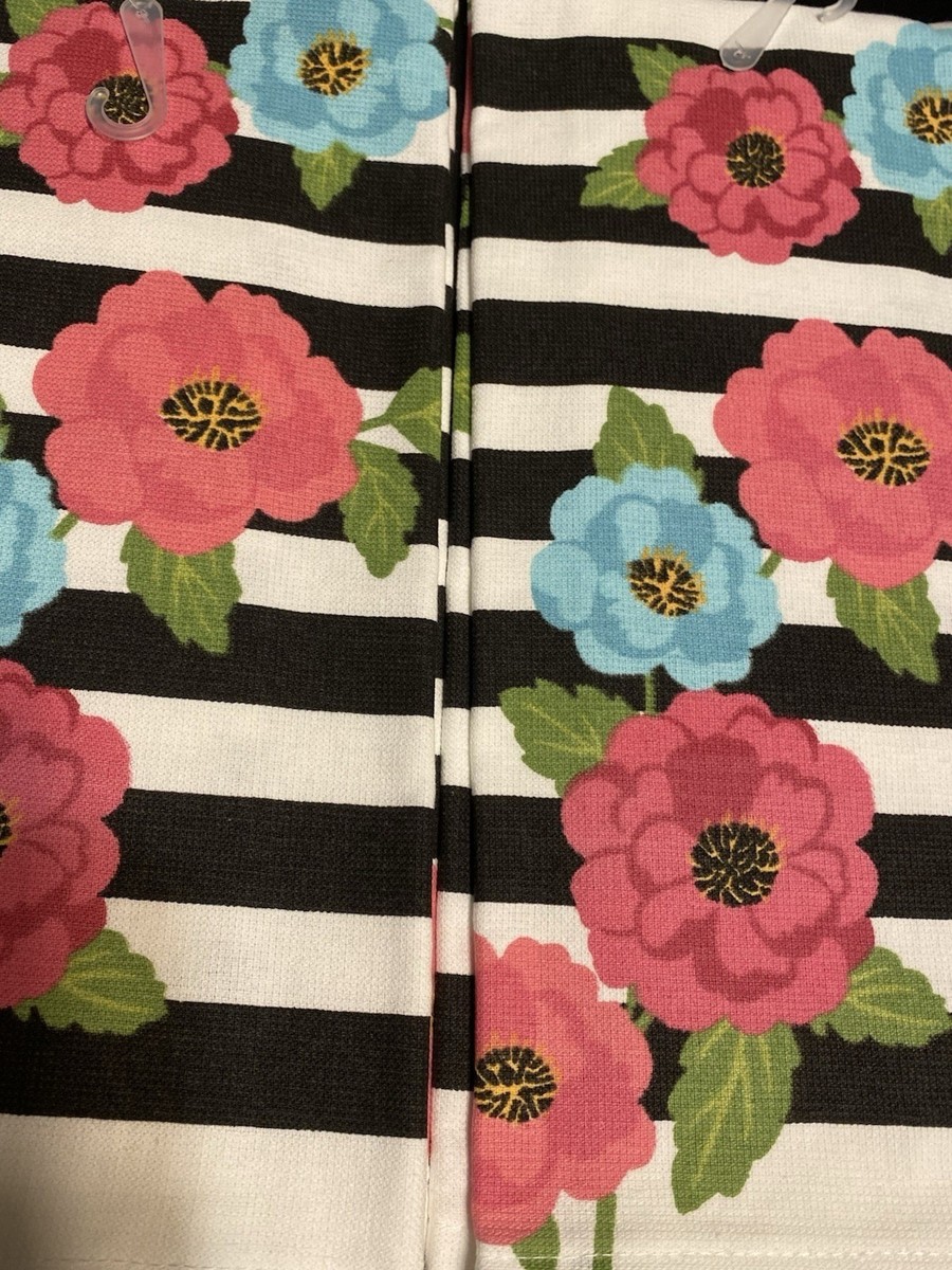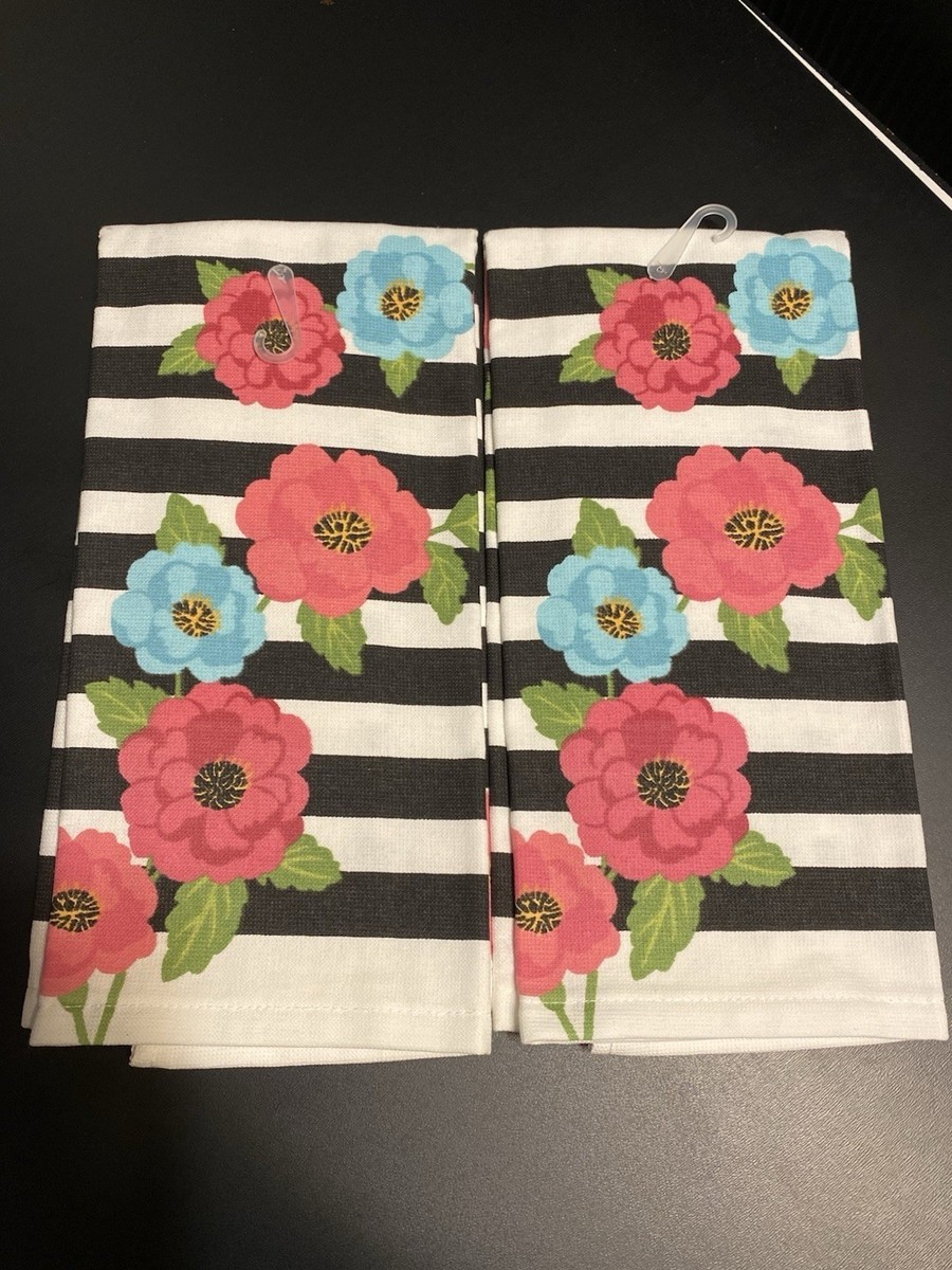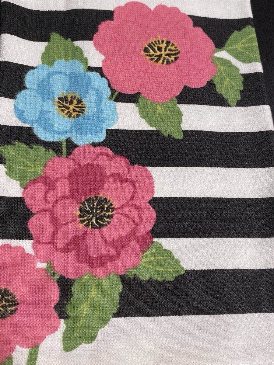 LOT of 2 Kitchen Black & White Stripe & Floral Tea Dish Towels Retro Set NEW NWT