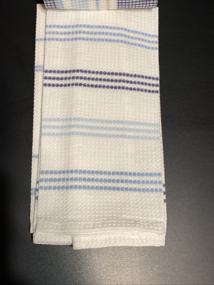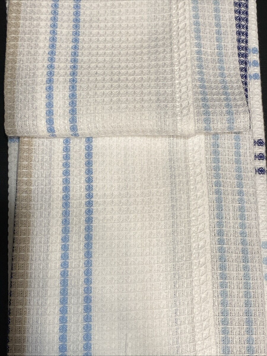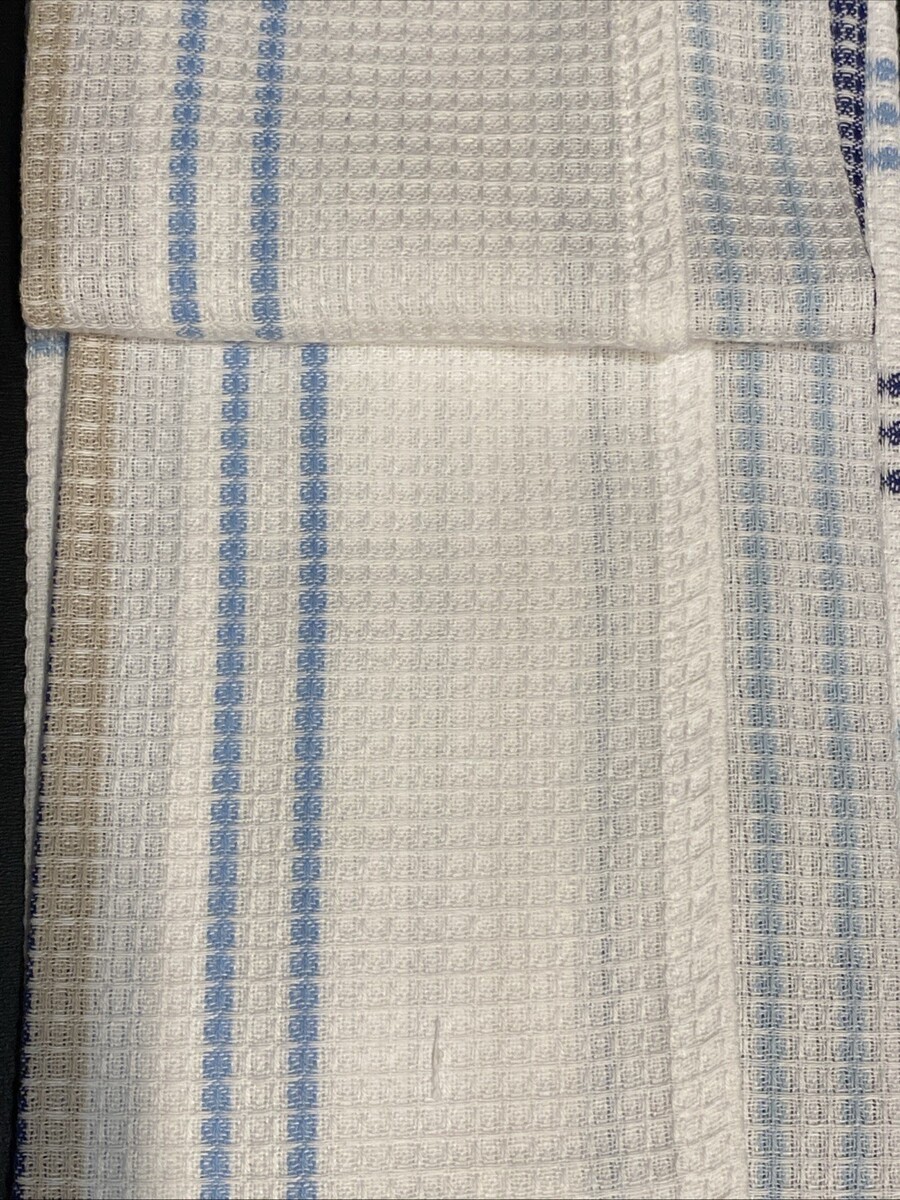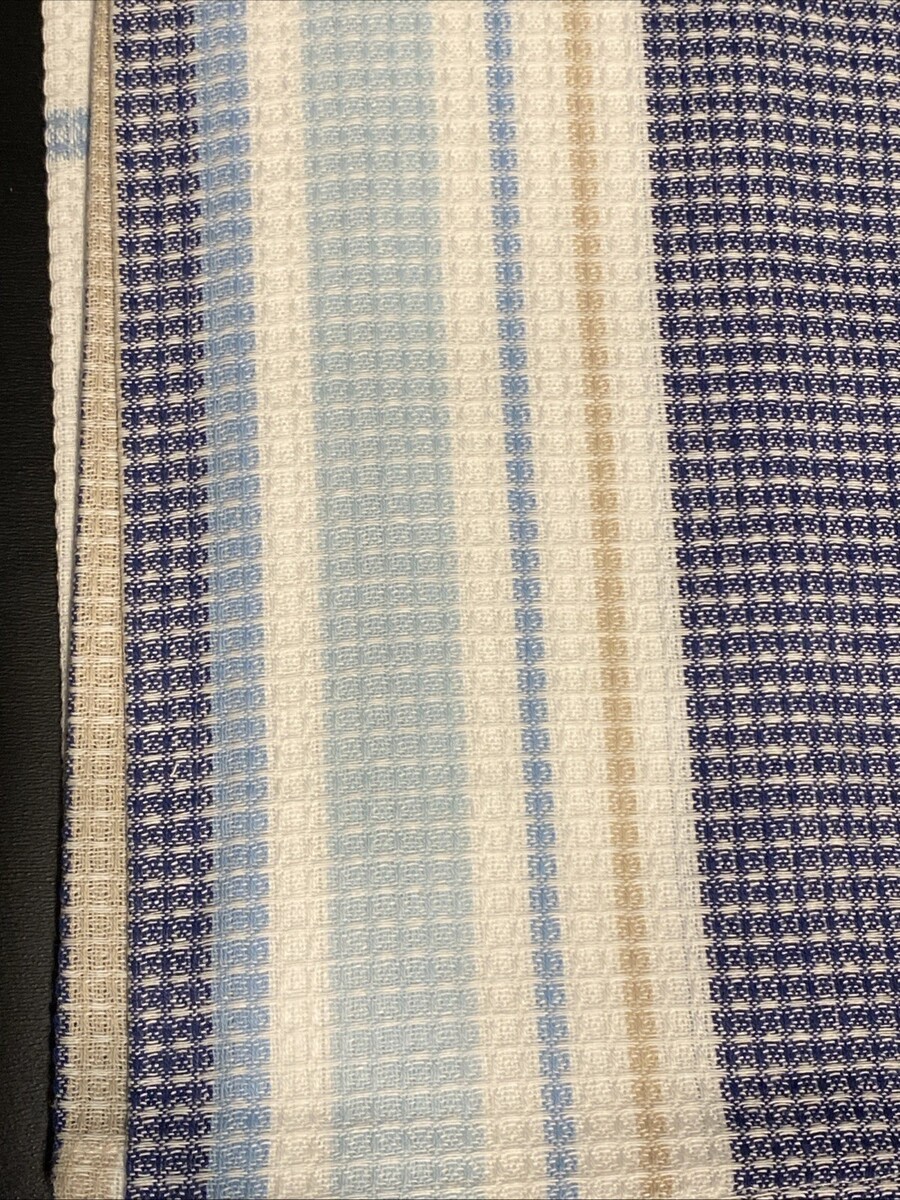 LOT of 6 Kitchen Dish Hand Towels Men's Guy's Boy's Blue Tan Stripe Waffle Set