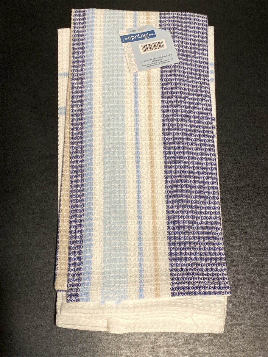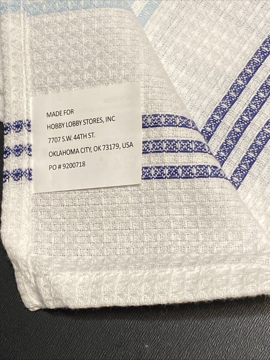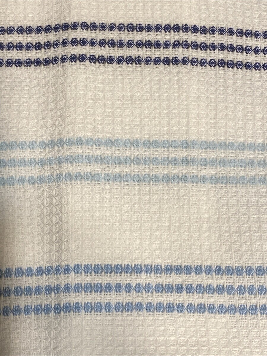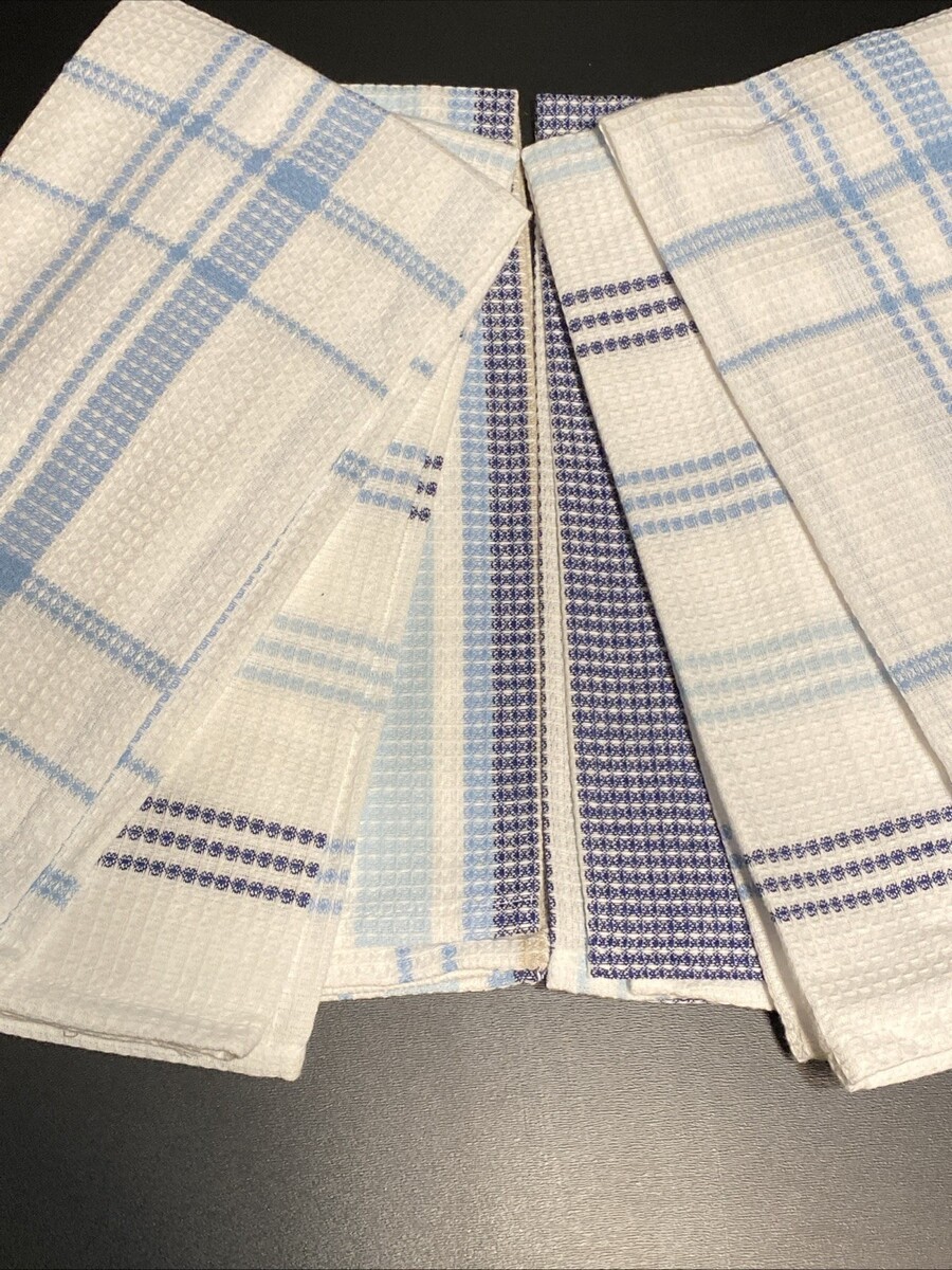 LOT of 6 Kitchen Dish Hand Towels Men's Guy's Boy's Blue Tan Stripe Waffle Set