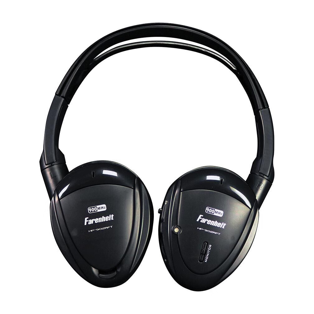 This pair of headphones transmitter package is a great solution if you have multiple entertainment devices in the vehicle with conflicting headphone transmitters. The small 900mHz transmitter module can be located anywhere in the vehicle, simply give the module power and audio signal from up to two DVD players, game consoles, or similar devices. Multiple users will enjoy uninterrupted sound from the selected device. HP-902RFT headphones feature an adjustable swiveling over-the-ear pad to reduce ambient noise. Each headphone has independent volume control, channel selector switch, and an auxiliary audio input to directly connect an iPod or other device with headphone output. A hardened plastic carry case is included for protective storage.