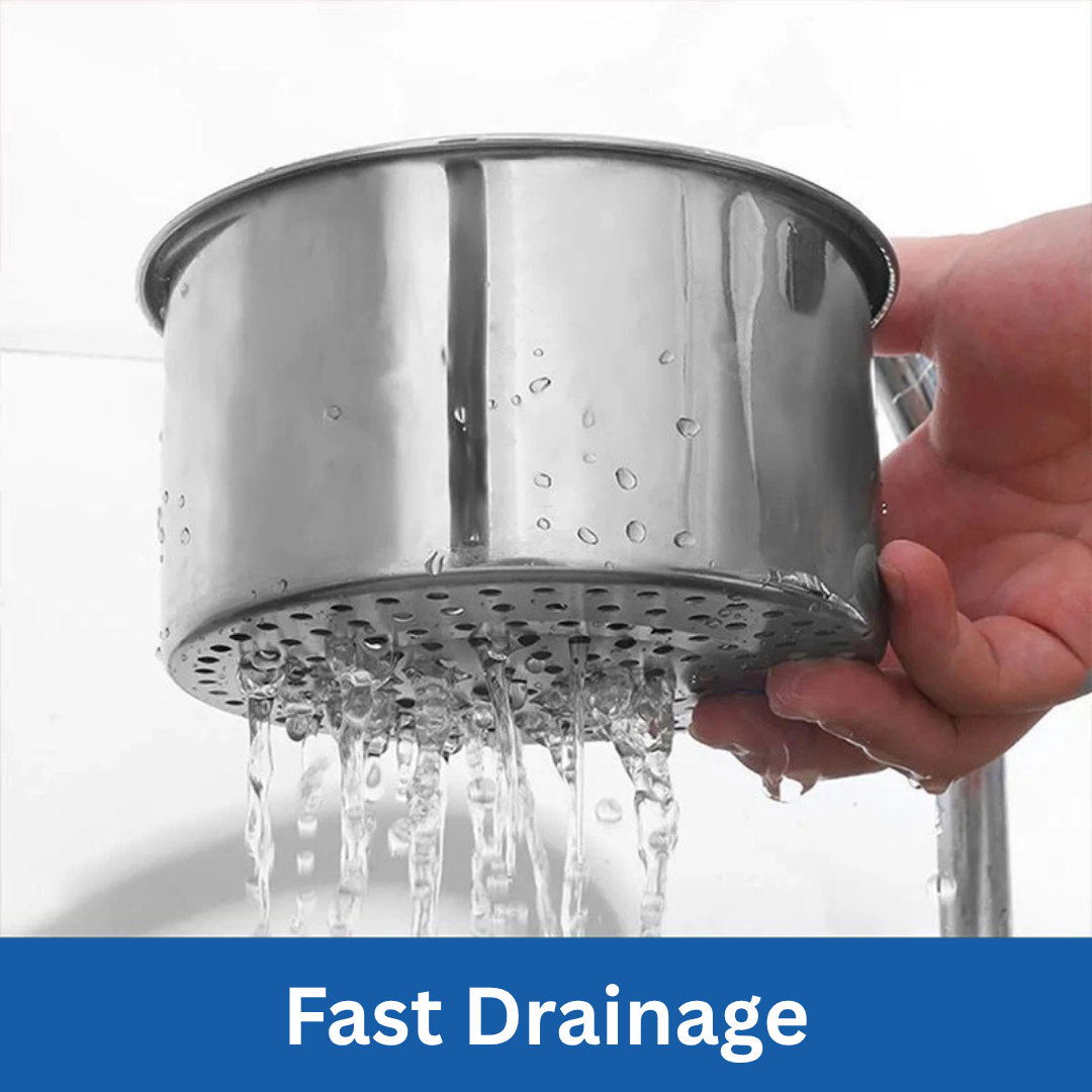 Made from durable stainless steel, it is rust-resistant, long-lasting, and easy to clean. The raised base and drainage hole design help water flow quickly while keeping food waste inside the basket.