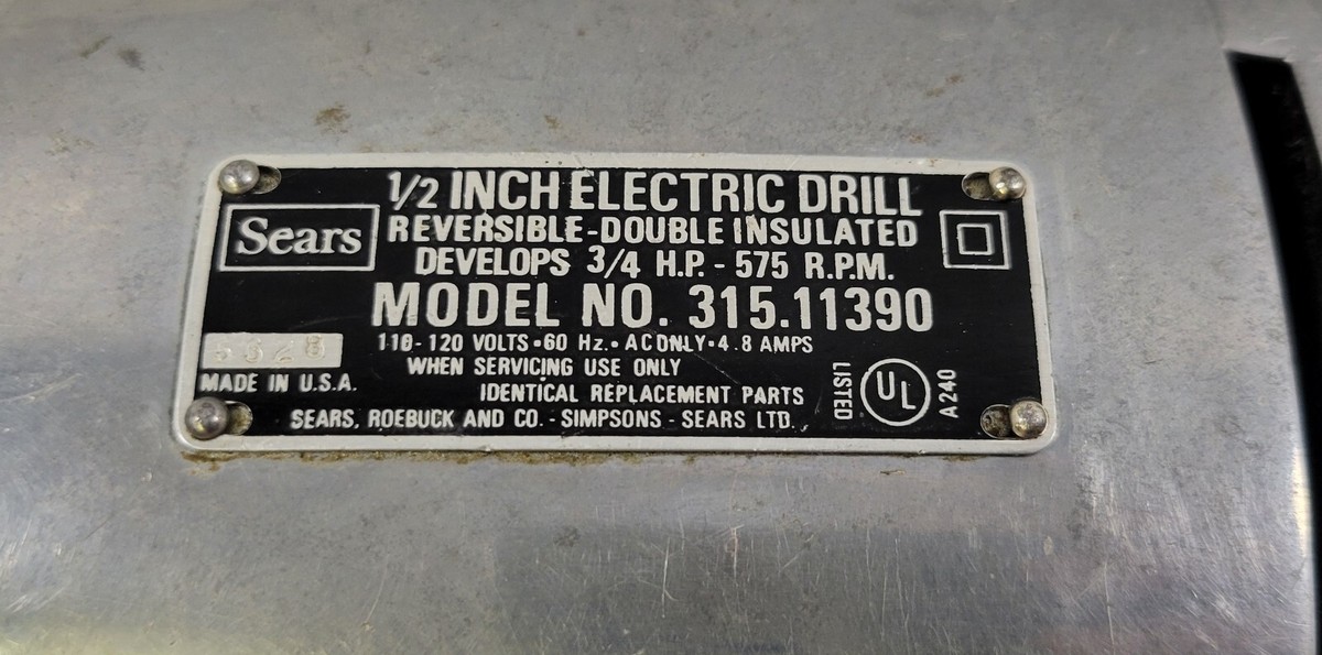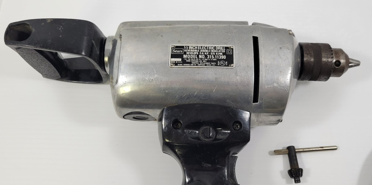 *Y) Vintage Sears Craftsman 1/2" Electric Reversible Drill 315.11390 3/4 HP USA