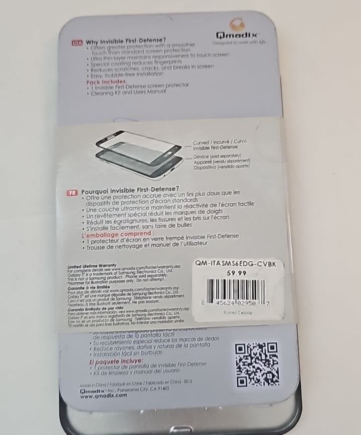Qmadix Invisible Defense Tempered Glass Samsung Galaxy S6 Edge SM-G925F Black