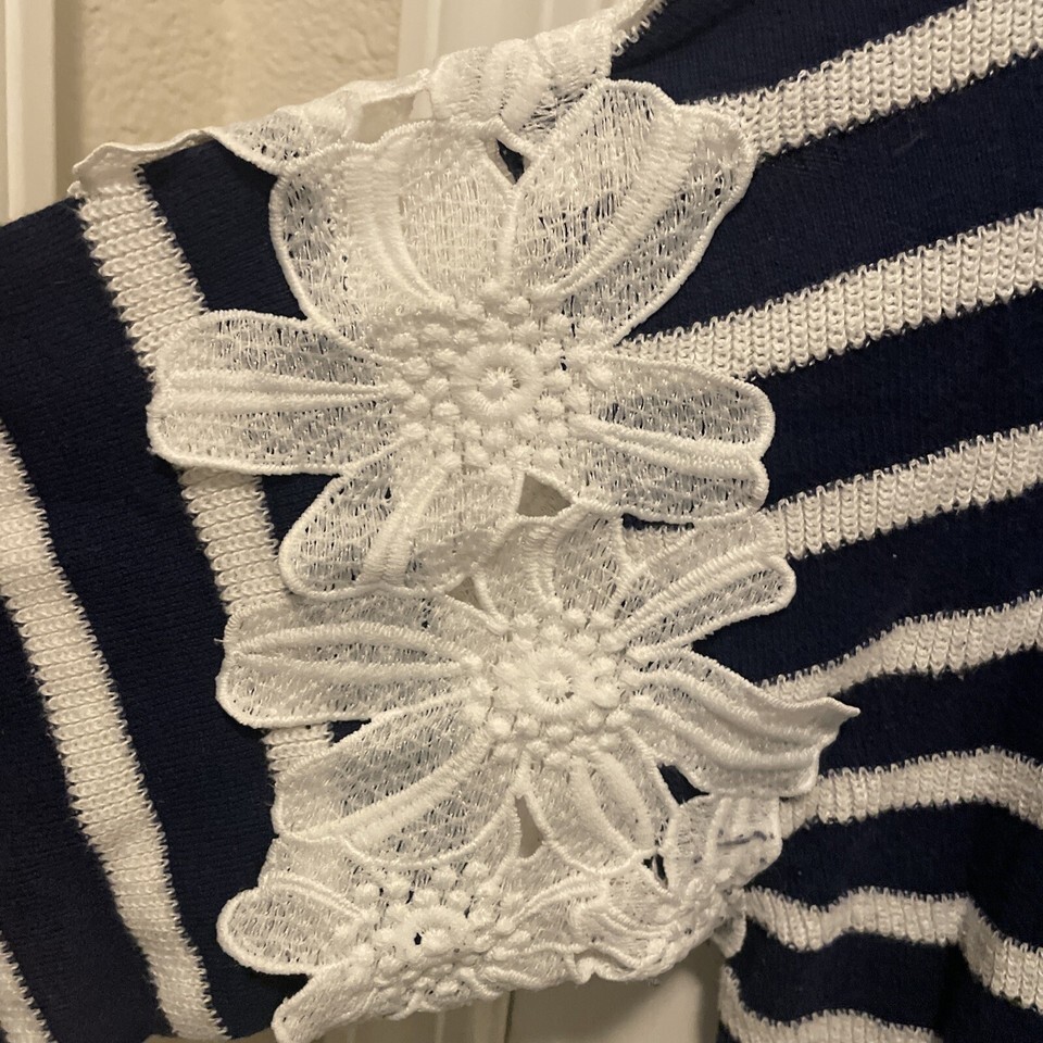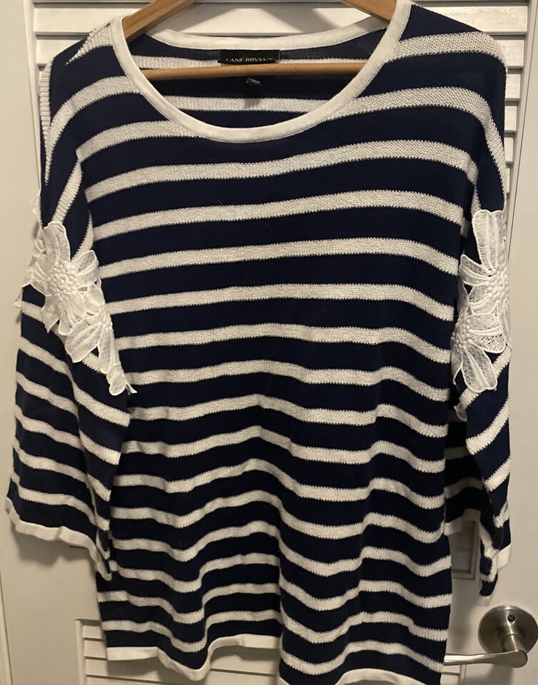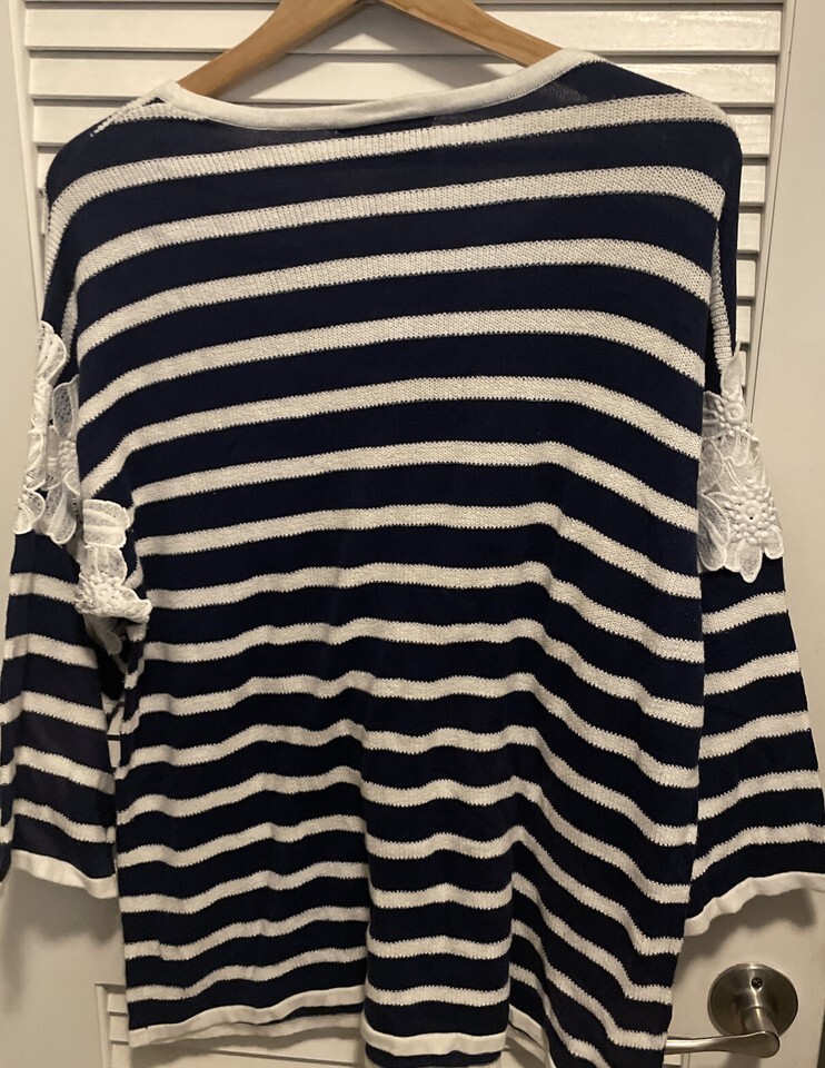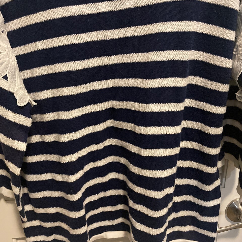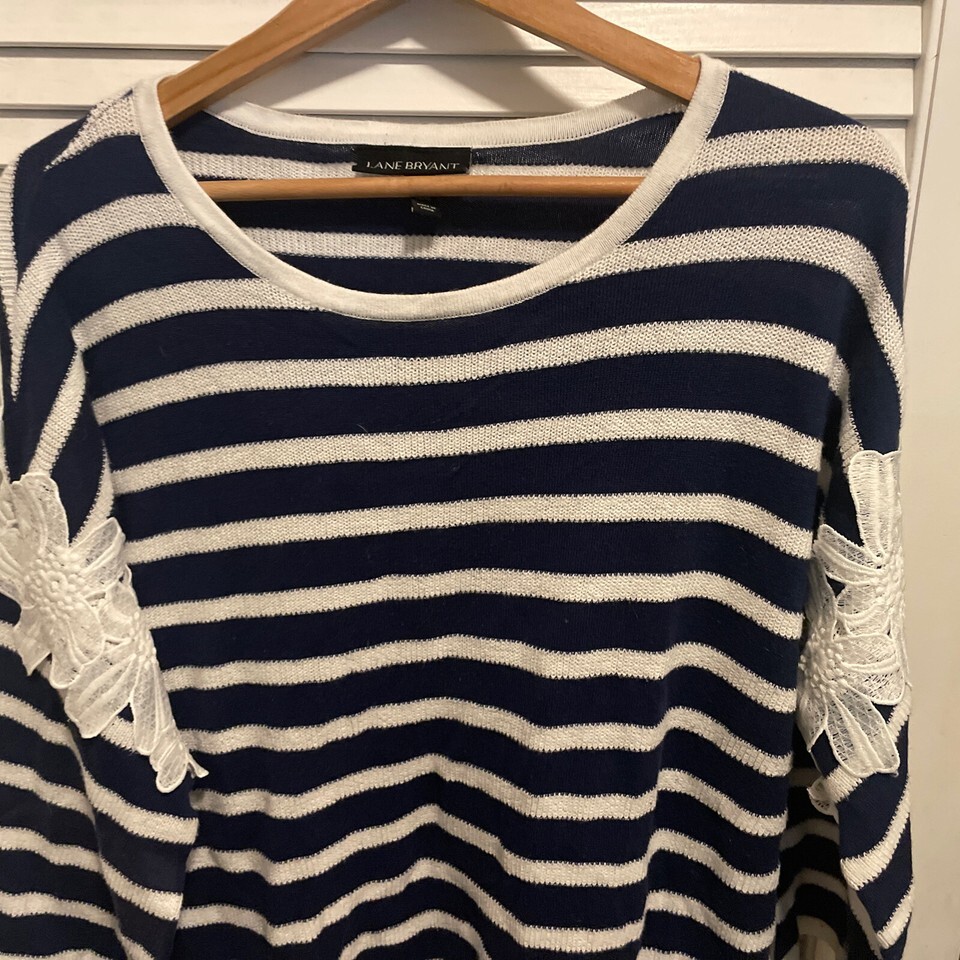 Lane Bryant Womens Sweater 14/16 Blue Pullover Striped Lace Nautical