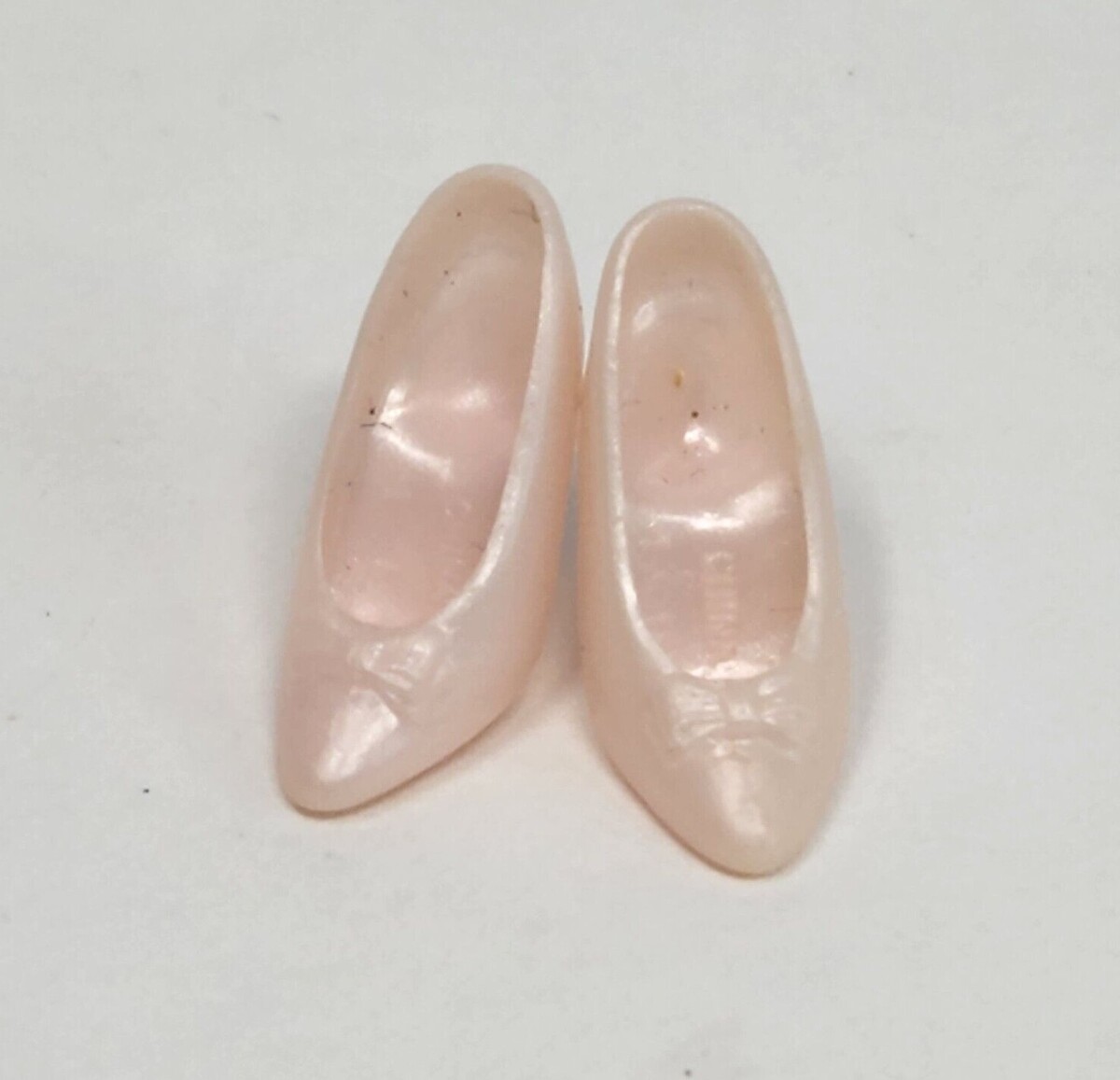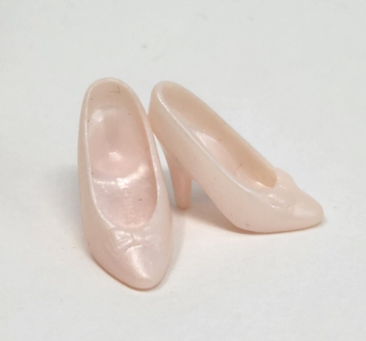 VINTAGE MATTEL BARBIE LIGHT PINK PEARL CLOSED TOE HIGH HEELS PUMPS SHOES W/ BOW