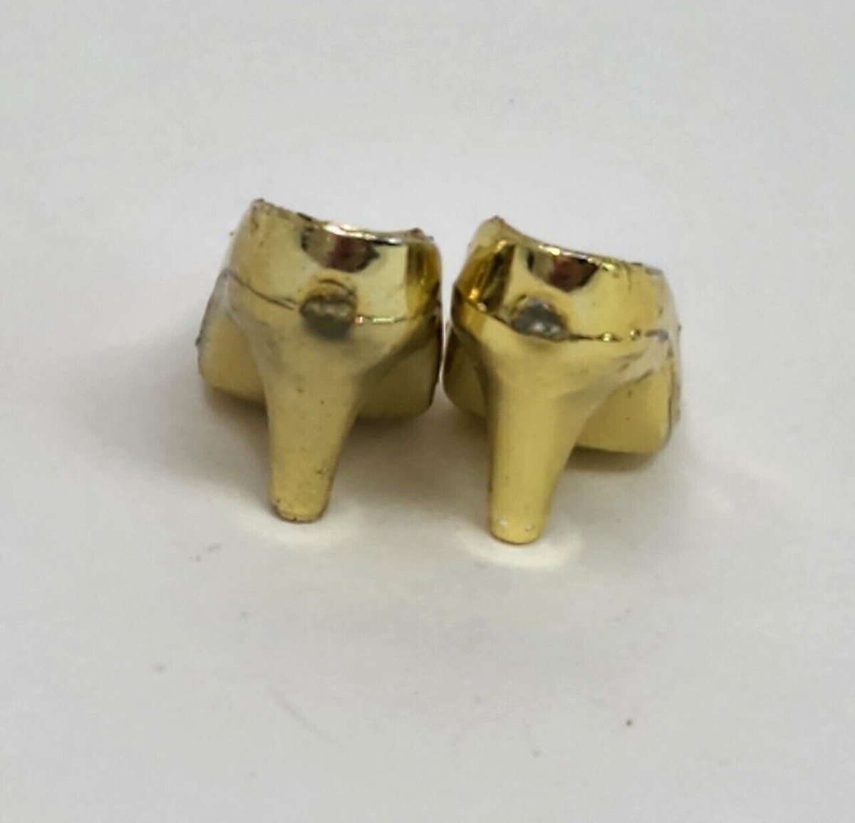 VINTAGE 1990's MATTEL BARBIE PAIR SHINY METALLIC GOLD HIGH HEEL HEELS SHOES