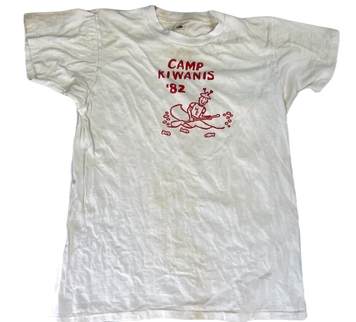 VTG 80s Camp Kiwanis '82 T-Shirt Grunge Distressed White/Red XL FOTL