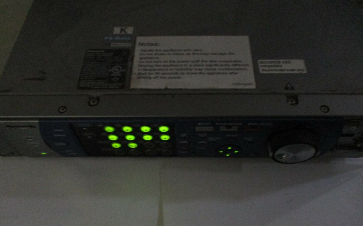 This is a used item. This unit powers on and the fan runs. The power light, the four arrow lights, and lights on buttons number 1 - 10/0 come on. We are not able to get any other lights to come on. It is missing the small plastic door on the front panel as can be seen in the pictures. It is missing all but one rubber foot from the bottom. We are not able to test it further. This type of unit does not have a slot to insert a disc and so you would need some other additional equipment to do that.