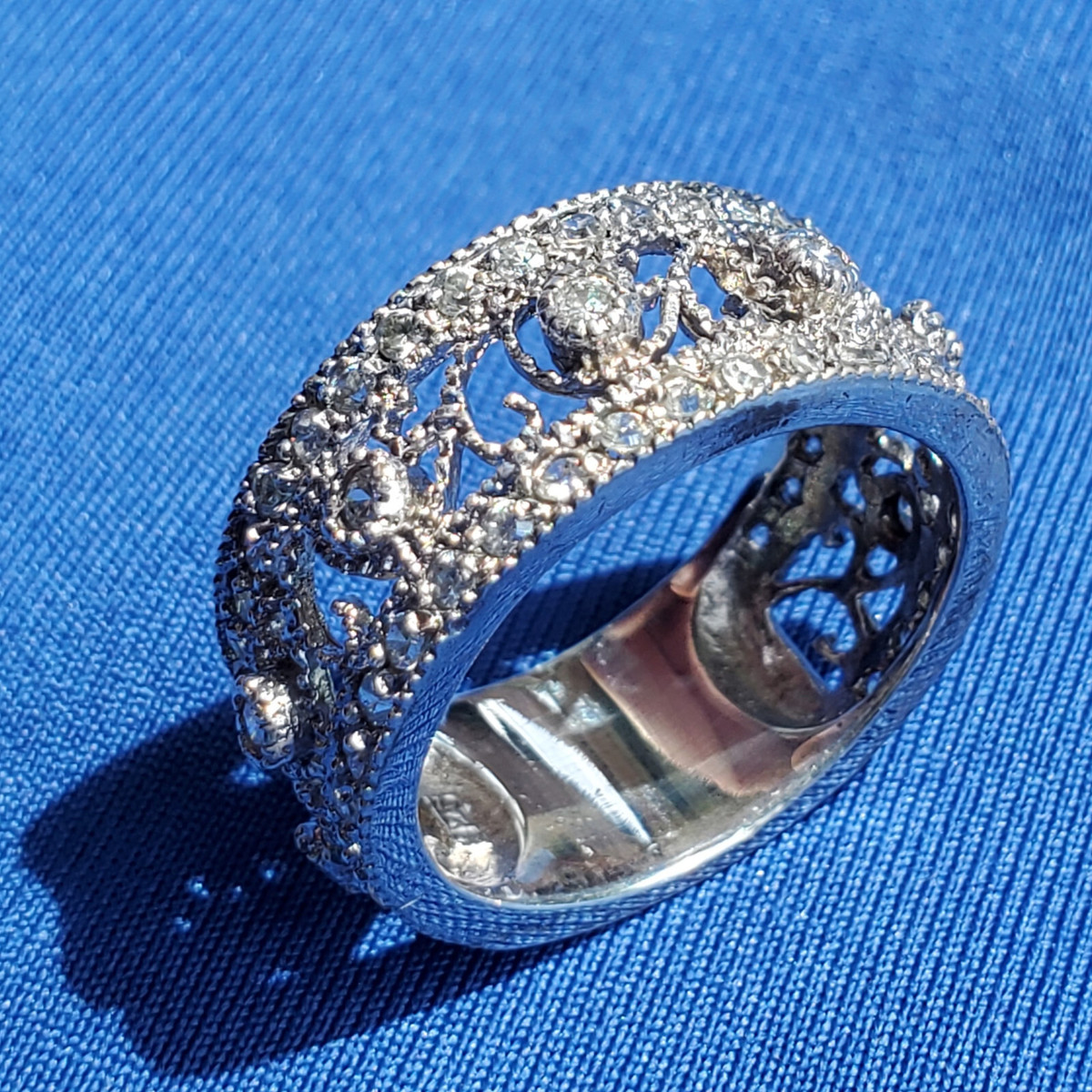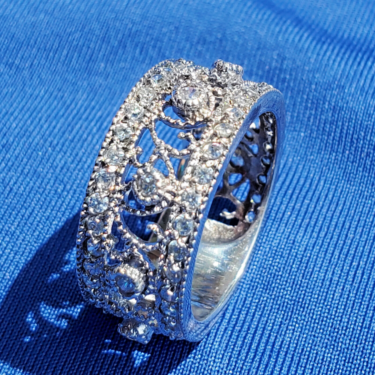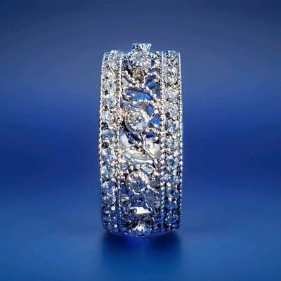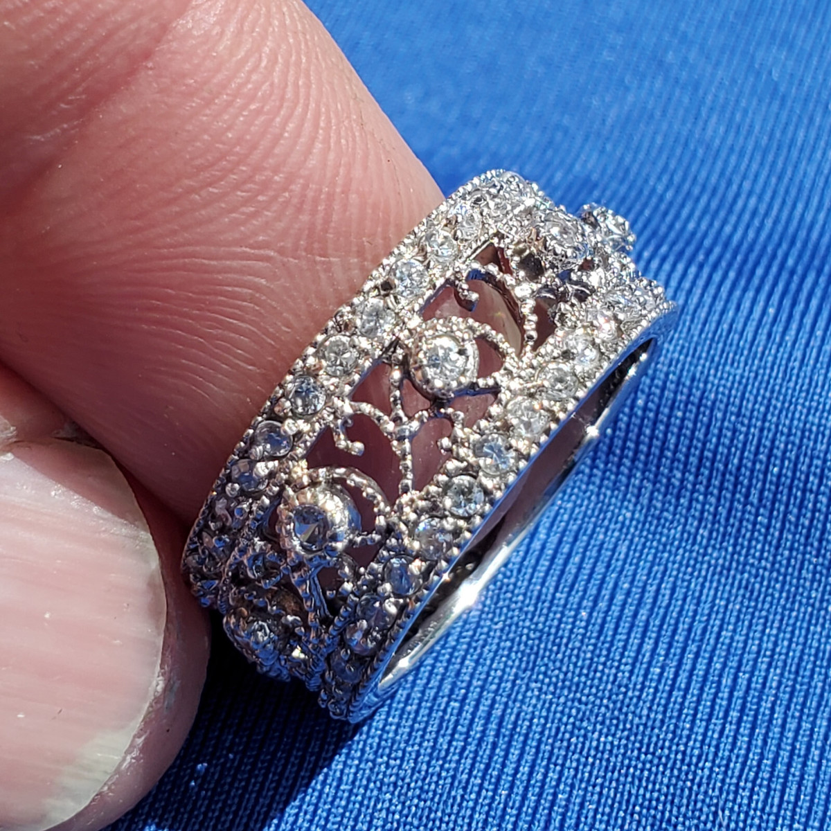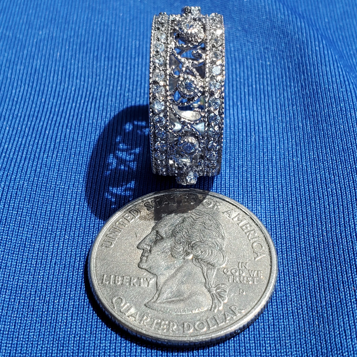 Sterling Silver DESIGNER White CZ Filigree Wedding Band ETERNITY Ring Size 7.75