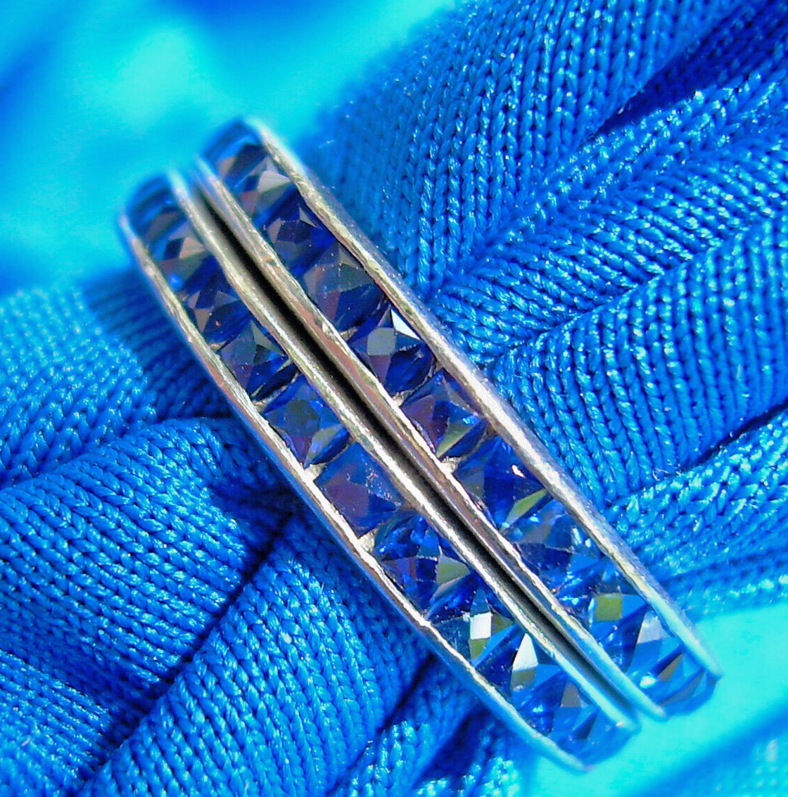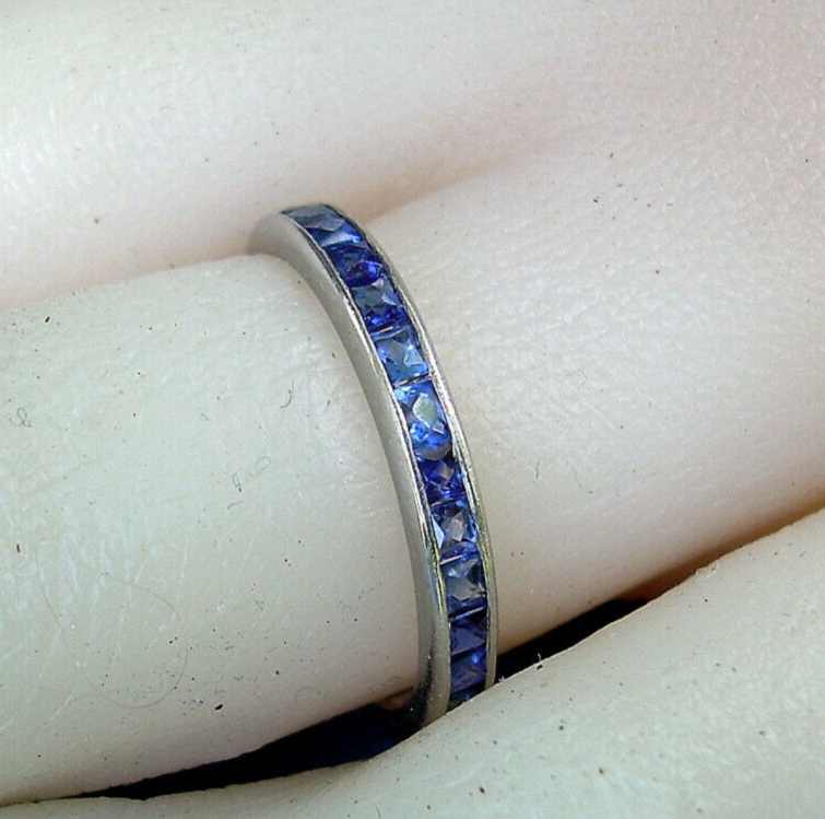 Antique SAPPHIRE French cut Wedding Band Deco PLATINUM Eternity Anniversary Ring