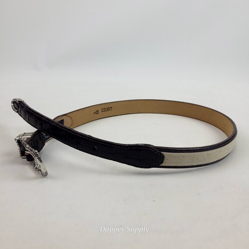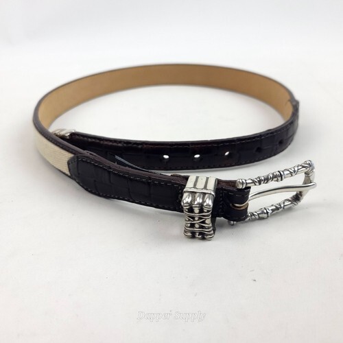 Brighton C3307 Brown Leather Linen Belt Silver Buckle S 28