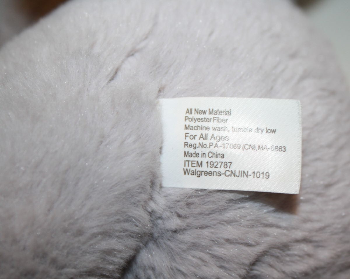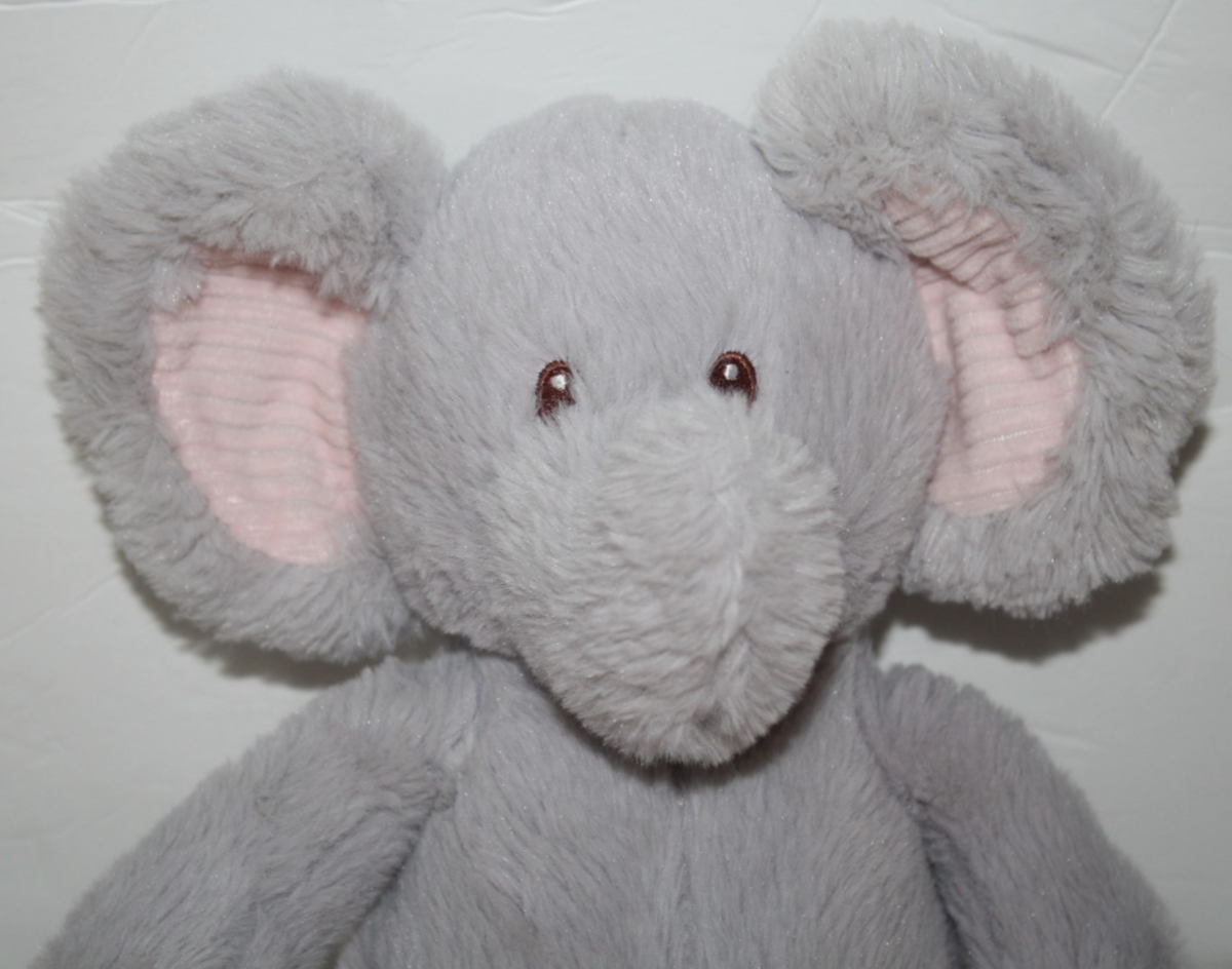 Walgreens, Cuddly Elephant, with Sewn Eyes, Gray with Pink Ribbed Inner Ears and Feet, Approx 13 inch, Plush, Soft Baby Toy, Lovey, Stuffed Animal, Item no. 192787