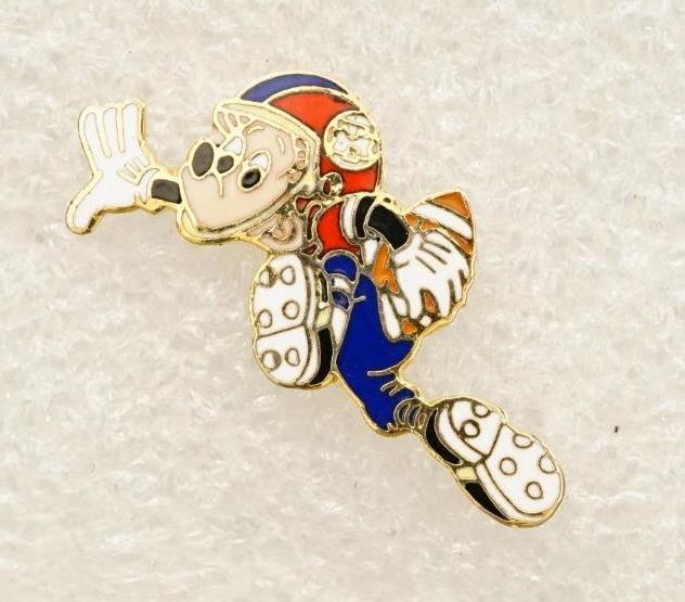 Disney Jewelry Enamel Trading Pin Mickey Mouse Vintage Football Player Taiwan 1970s - measures 1-1/8" tall. Back clasp present.