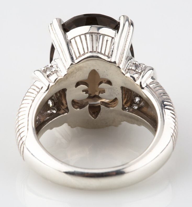 Beautiful Judith Ripka Smoky Quartz Sterling Silver Ring w/ Cubic Zirconia on Bezel
