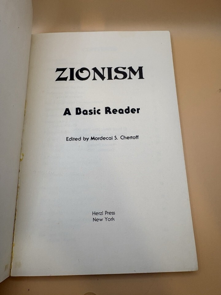 Zionism: A Basic Reader By Mordecai S. Chertoff, Herzl Press, Ex Library Copy