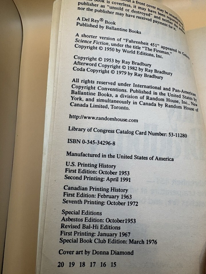 Fahrenheit 451 Ray Bradbury Del Rey and 50 similar items